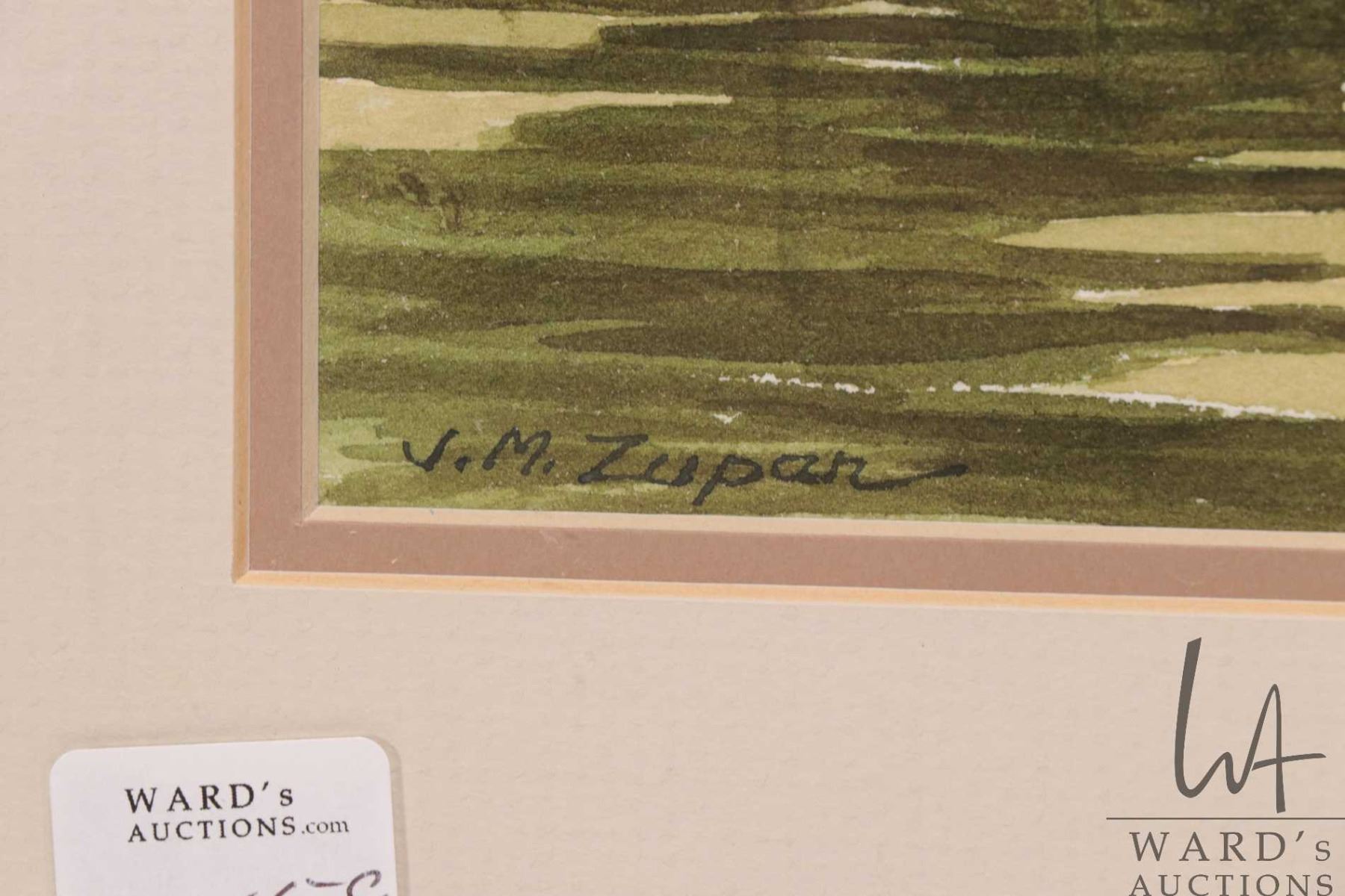 John M. Zupan (1941-1998) framed original watercolour painting, labelled " Beaver House", 6 1/2" X 13 1/2"