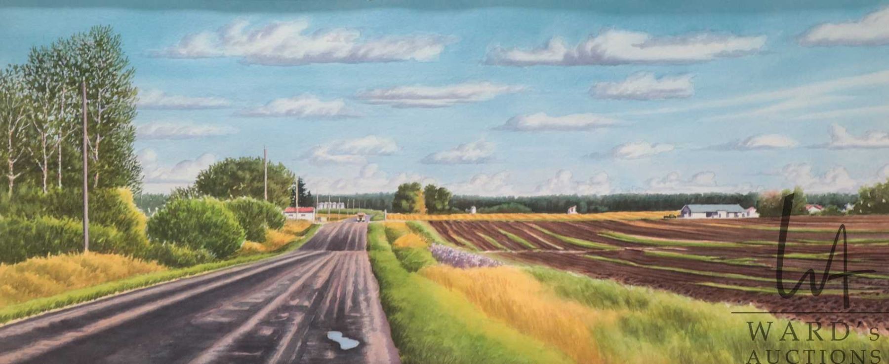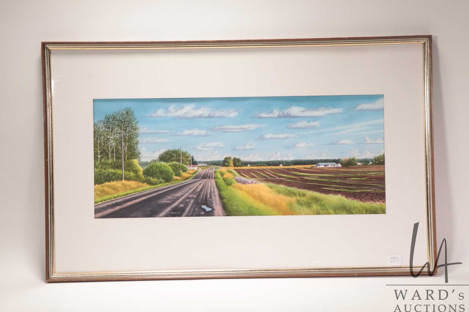 John M. Zupan (1941-1998) framed original watercolour painting of a summer rural scene, 8 1/2" X 21"