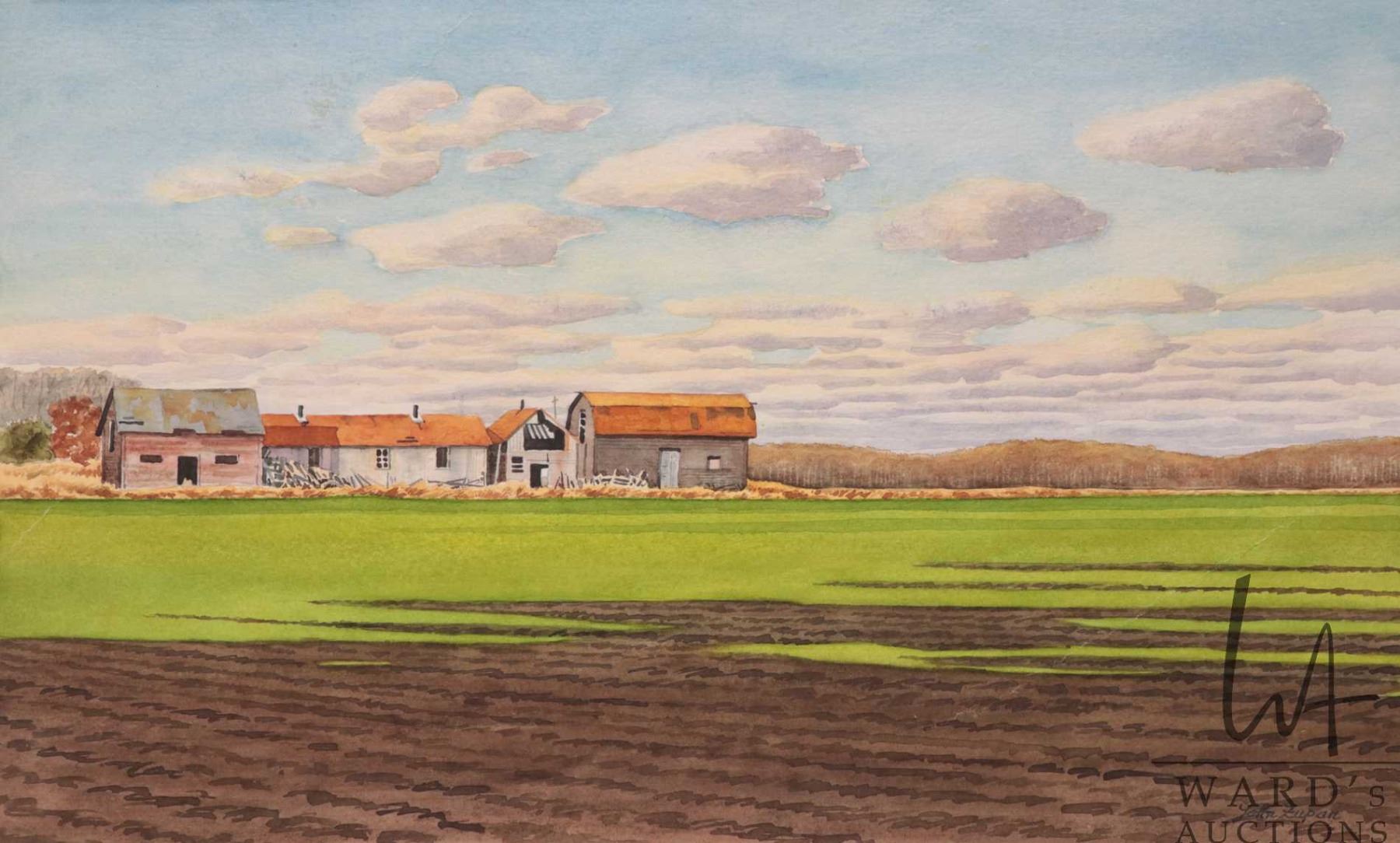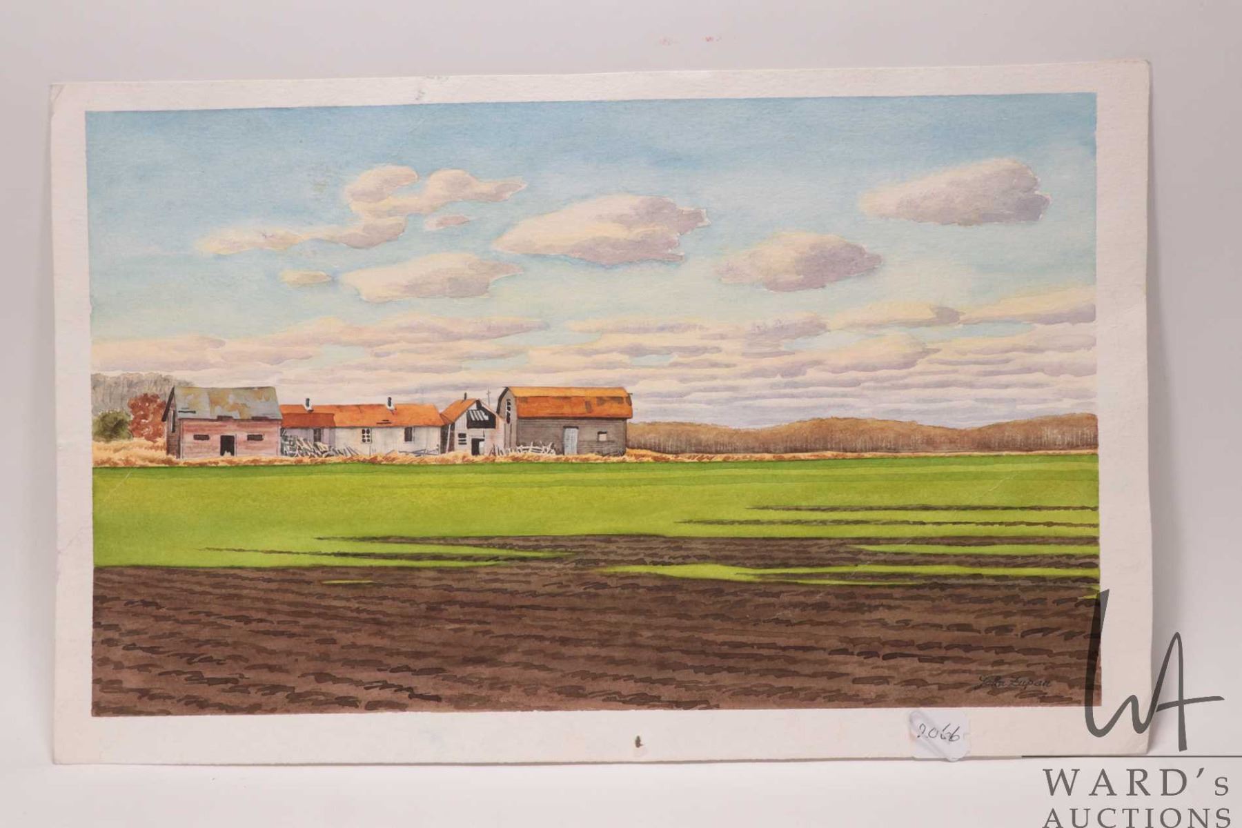 John M. Zupan (1941-1998) unframed original watercolour painting of a rural farm scene, signed by artist, 9 1/2" X 16"