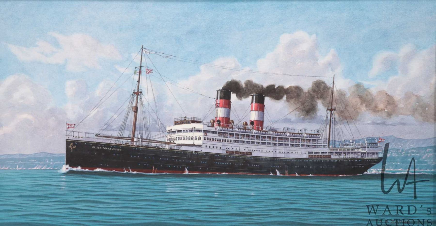 John M. Zupan (1941-1998) unframed original watercolour painting of the passenger liner Kaiser Franz Joseph, signed by artist 9 3/4" X 17"