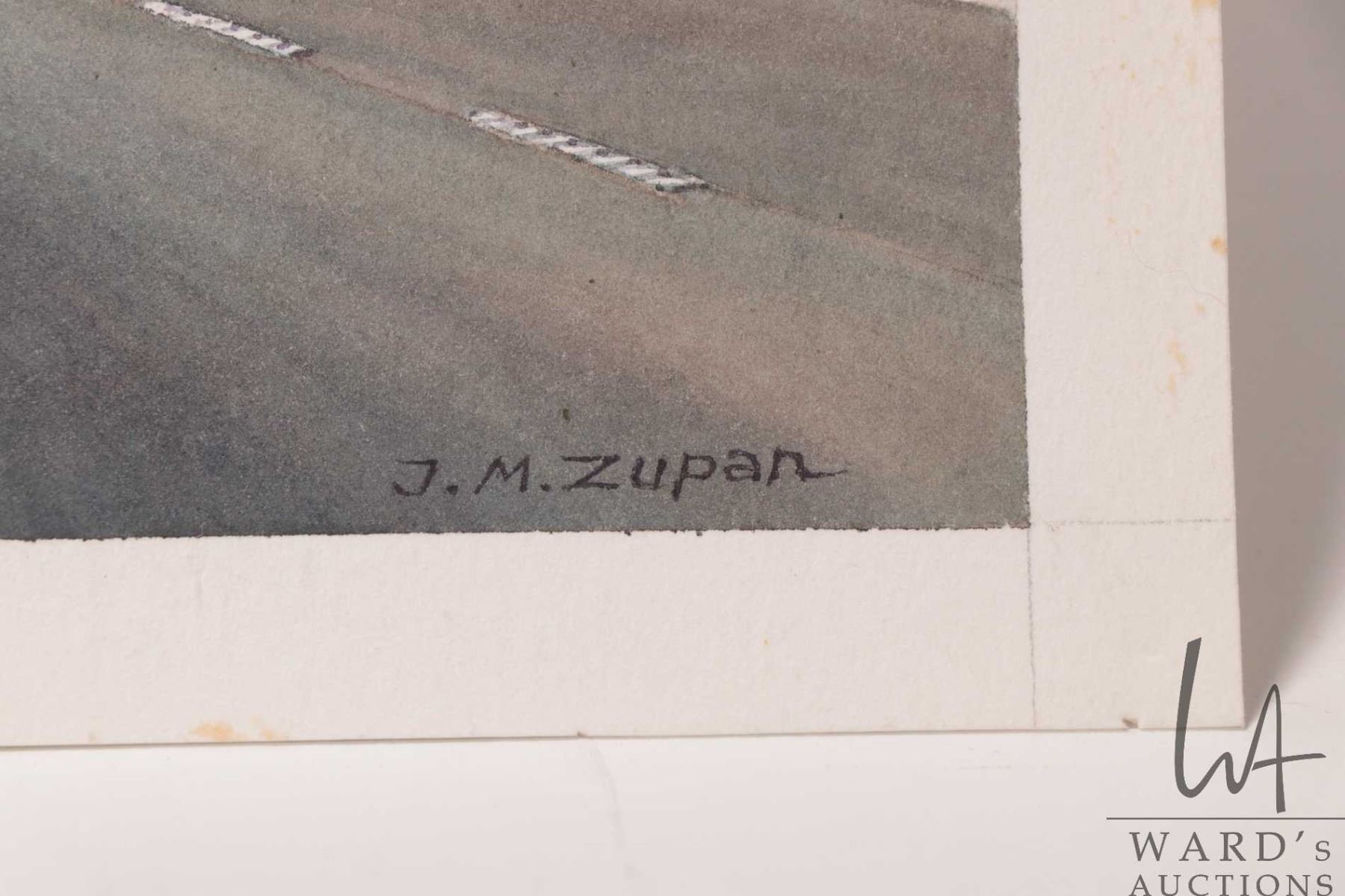 John M. Zupan (1941-1998) unframed original watercolour painting, titled on verso " Interstate #5 At