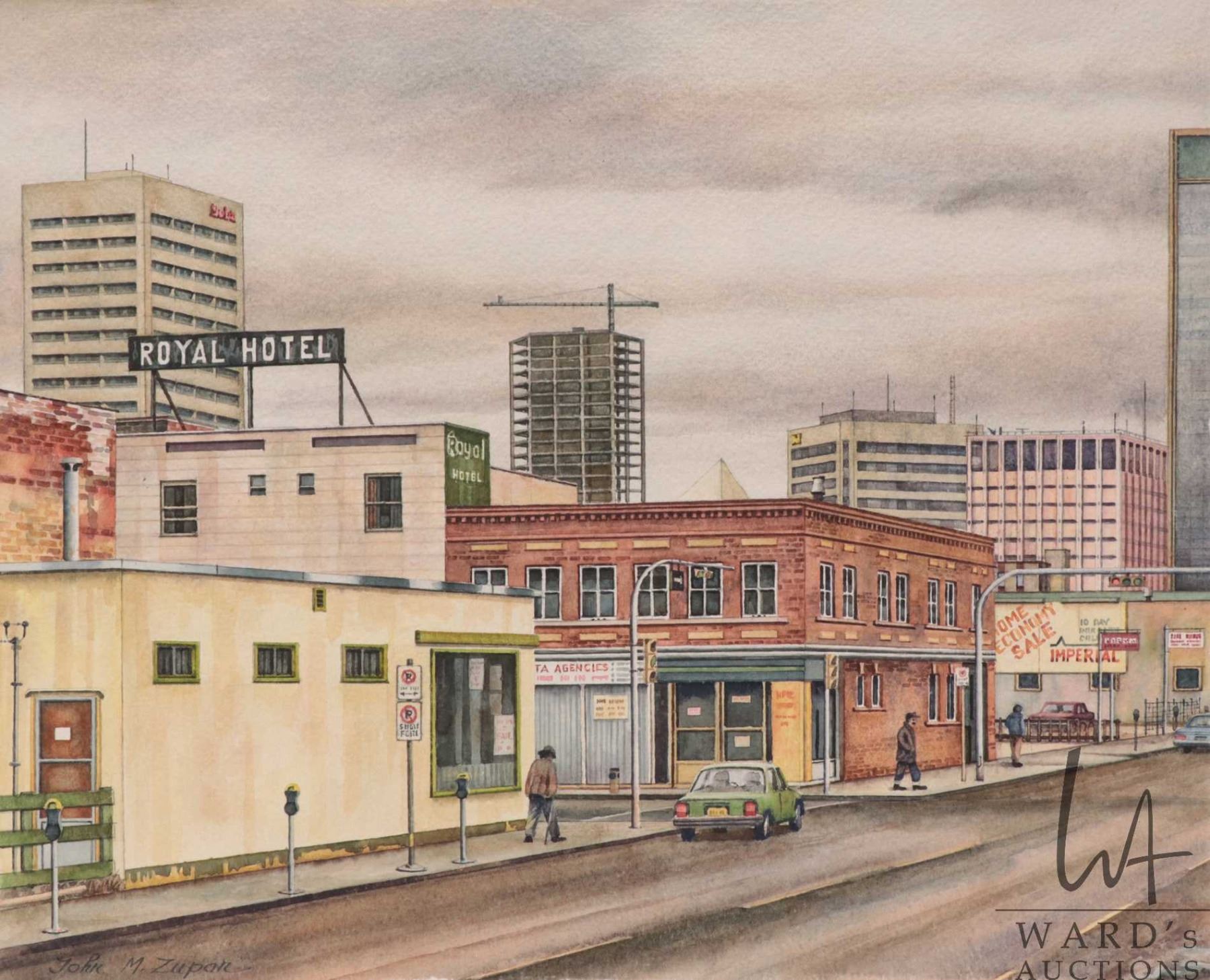 John M. Zupan (1941-1998) unframed original watercolour painting, titled on verso " Royal Hotel", 11 1/4" X 13 3/4"