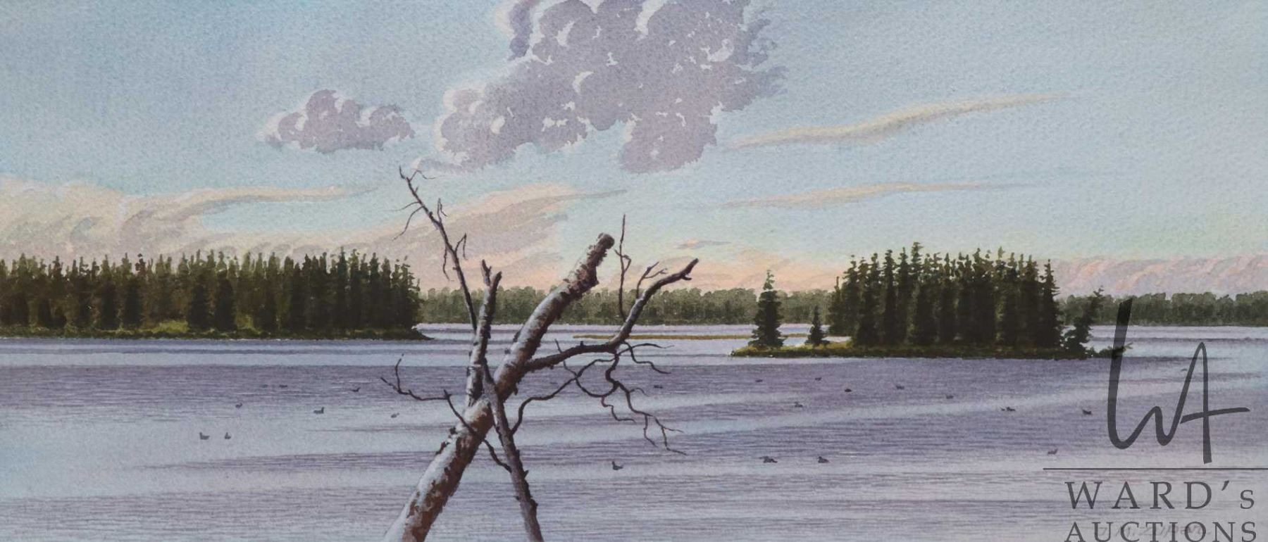 John M. Zupan (1941-1998) unframed original watercolour painting, titled on verso " Summer Afternoon, Astontin Lake", 6 1/2" X 14 3/4"