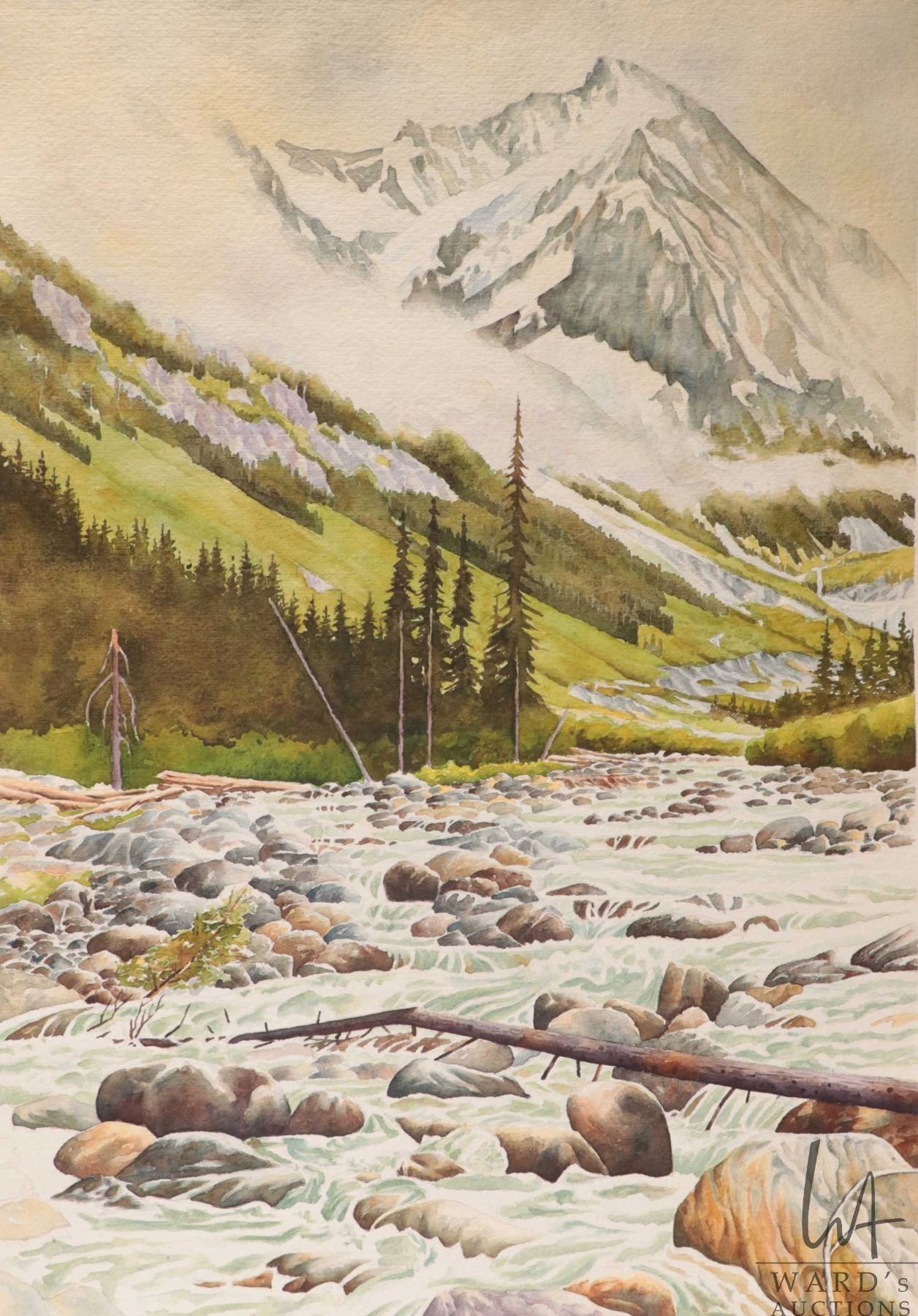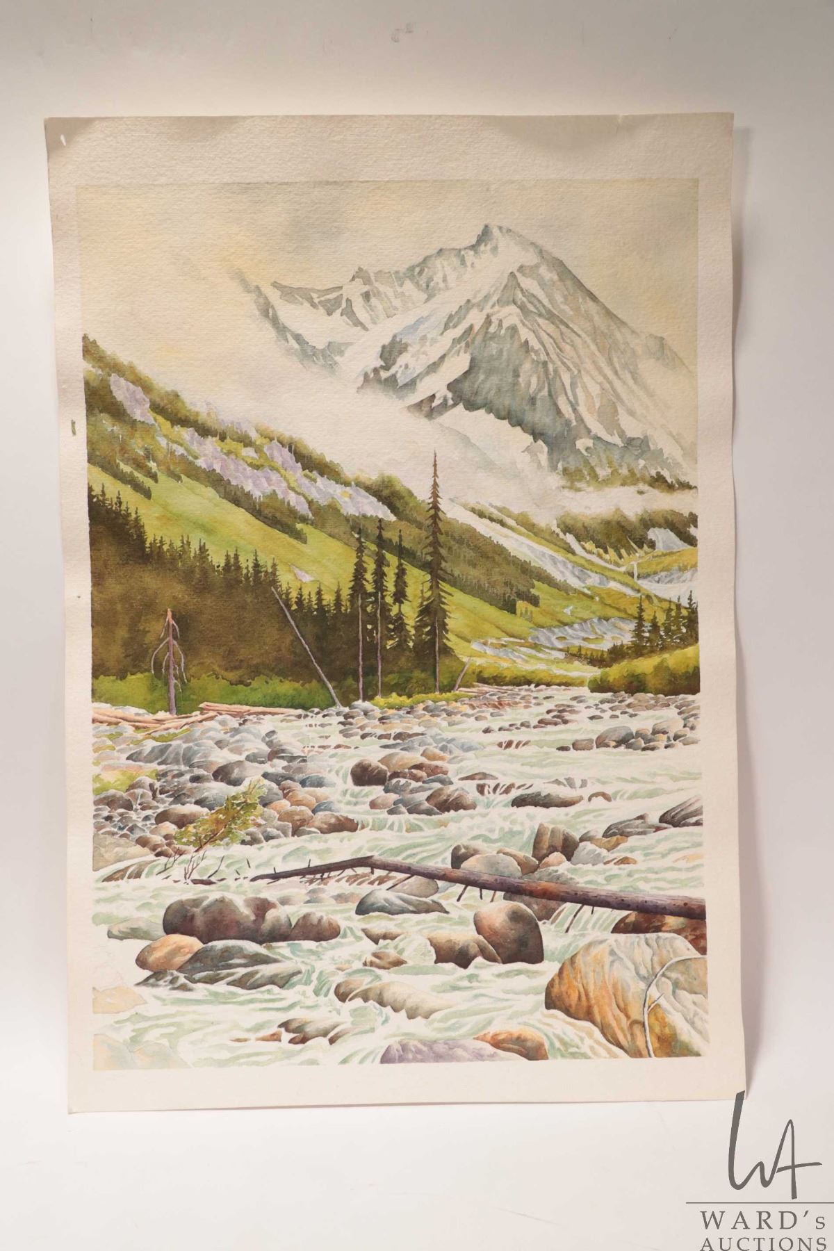 John M. Zupan (1941-1998) unsigned and unframed original watercolour mountainscape. From the estate of the artist, presumed to be his work, 18 1/2" X 12 1/2"