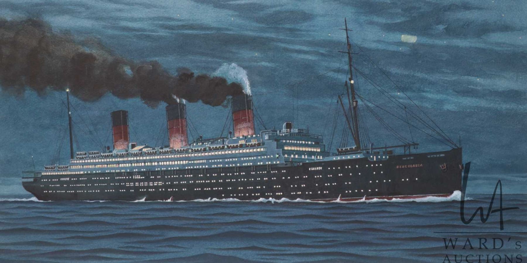 John M. Zupan (1941-1998) unsigned and unframed original watercolour of the Berengaria on the sea. From the estate of the artist, presumed to be his work, 10 1/2" X 18 3/4"