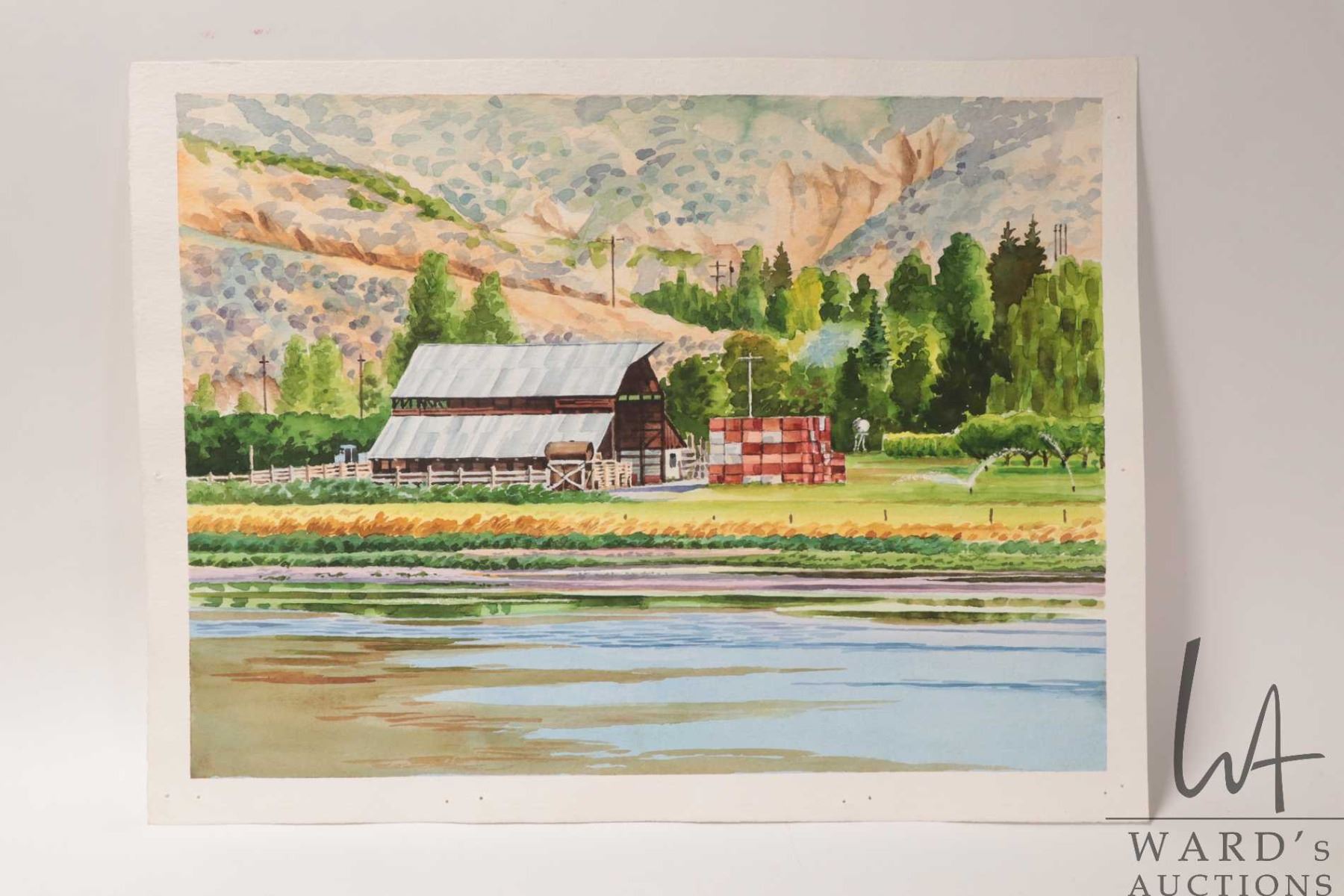 John M. Zupan (1941-1998) unsigned and unframed original watercolour painting of a modern barn. From the estate of the artist, presumed to be his work, 10" X 13 1/2"