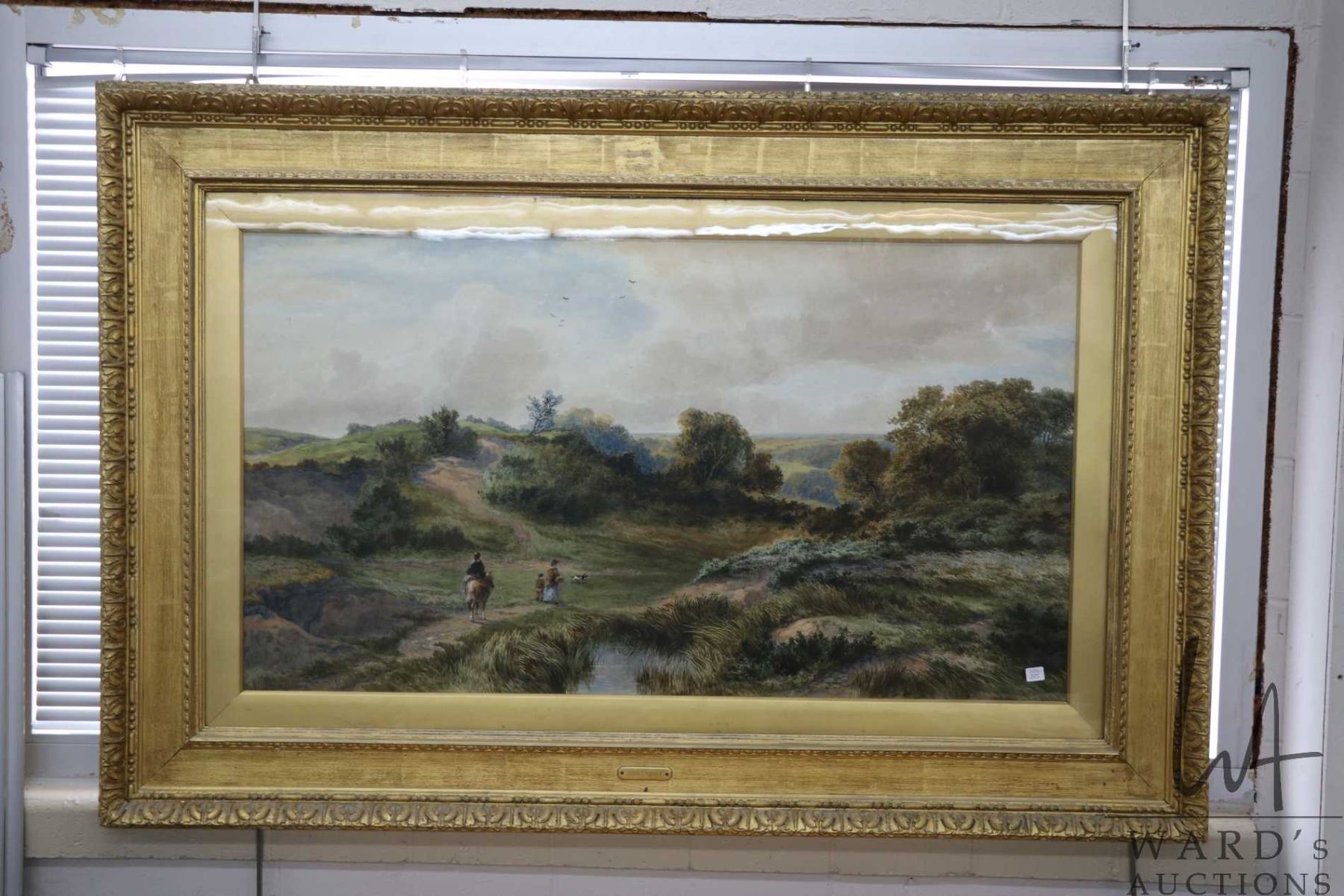 John Steeple (1823-1887) Antique gilt framed original watercolour painting of a idyllic country road with figures, signed by artist and dated 1882, 25" X 45 1/2"