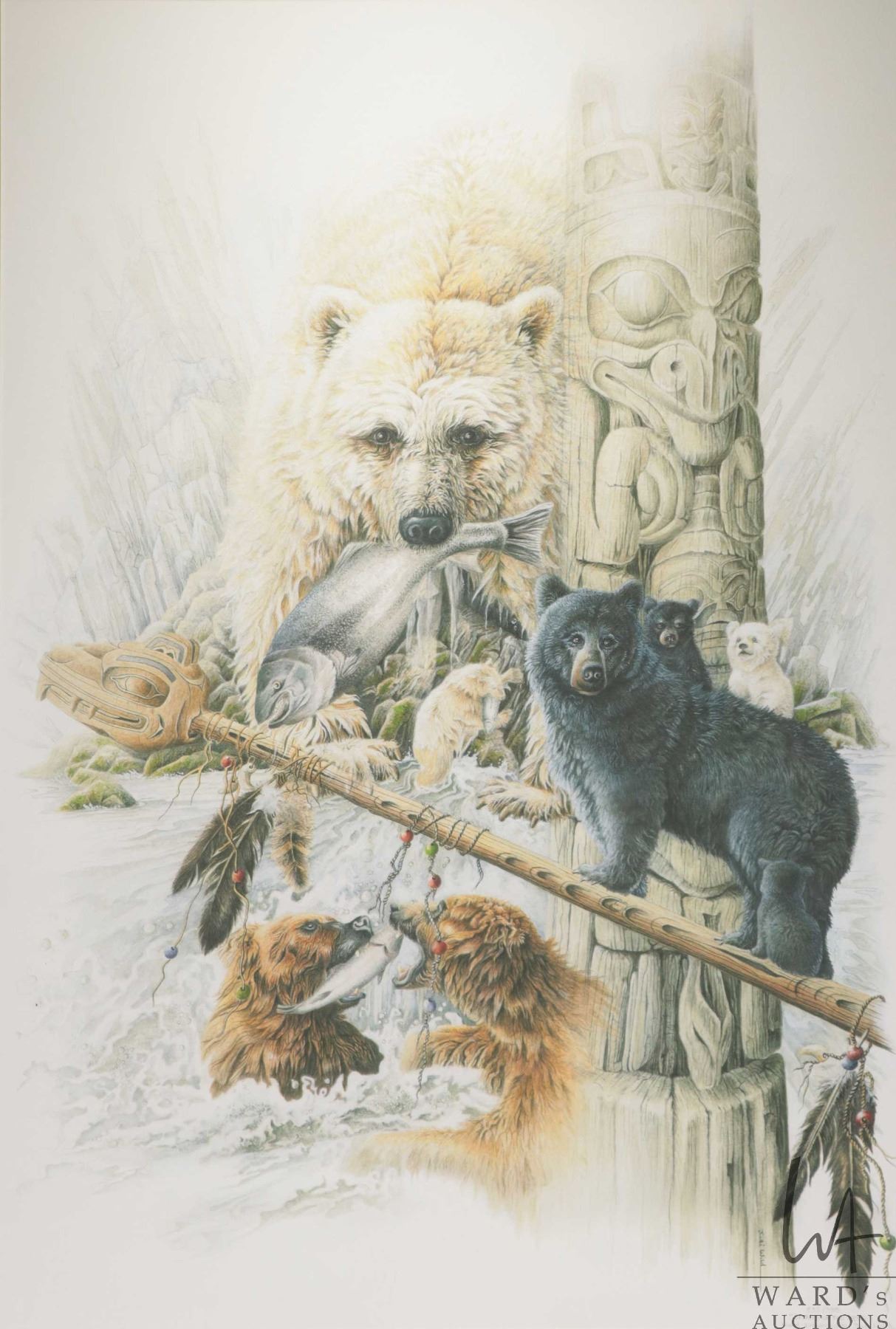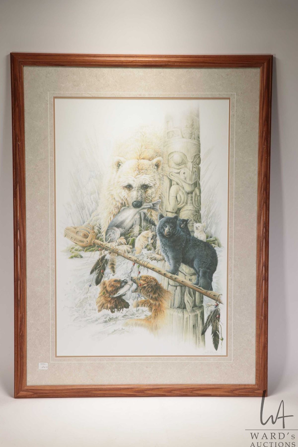 Judi Wild, framed limited edition, hand enhanced giclee print titled " Spirits of the Bear", pencil