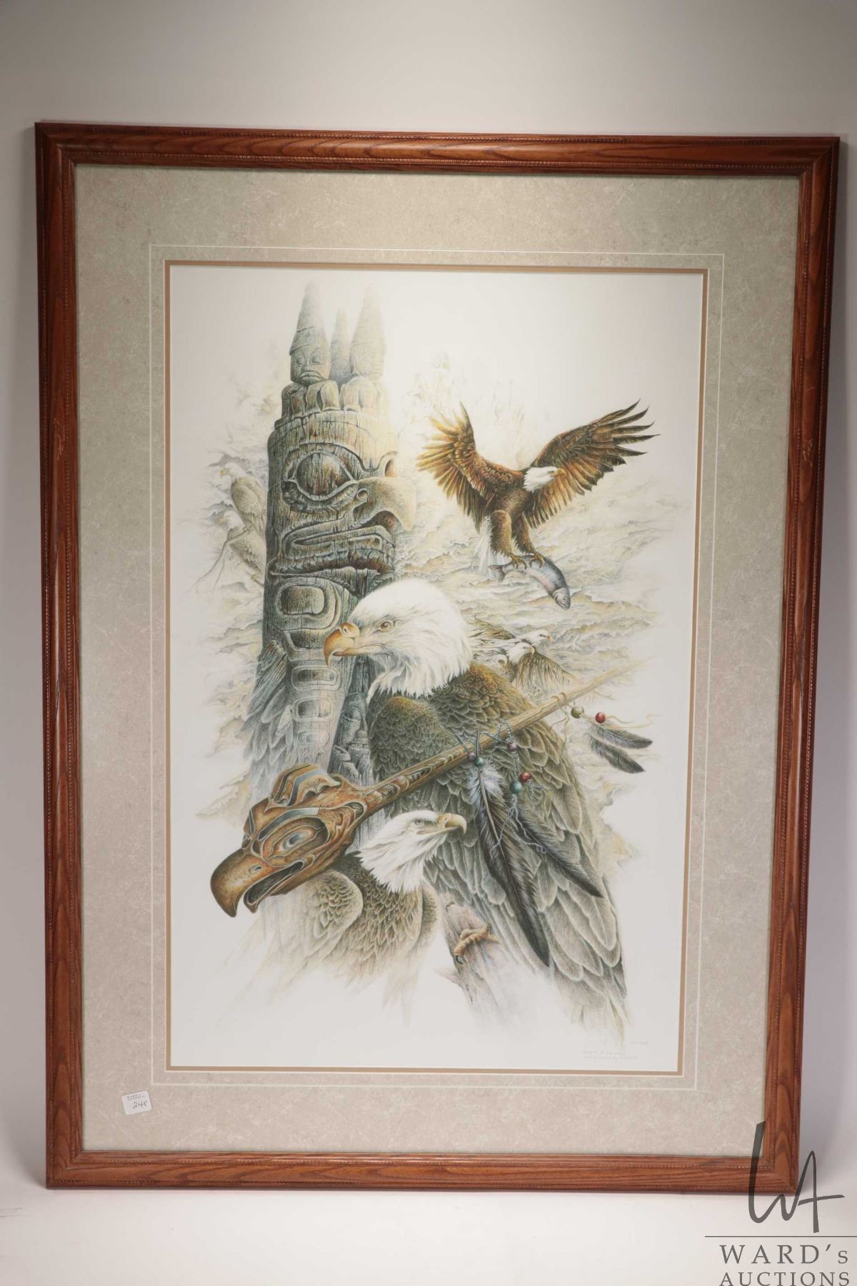 Judi Wild, framed limited edition, hand enhanced giclee print titled " Spirits of the Eagle", pencil signed by artist 235/395, includes COA, overall dimensions including frame "38" X 28"