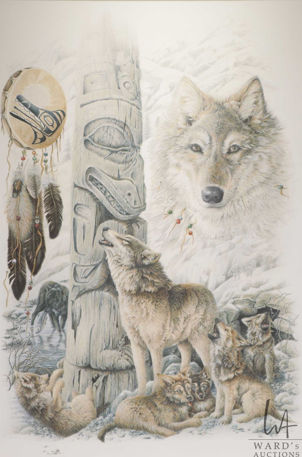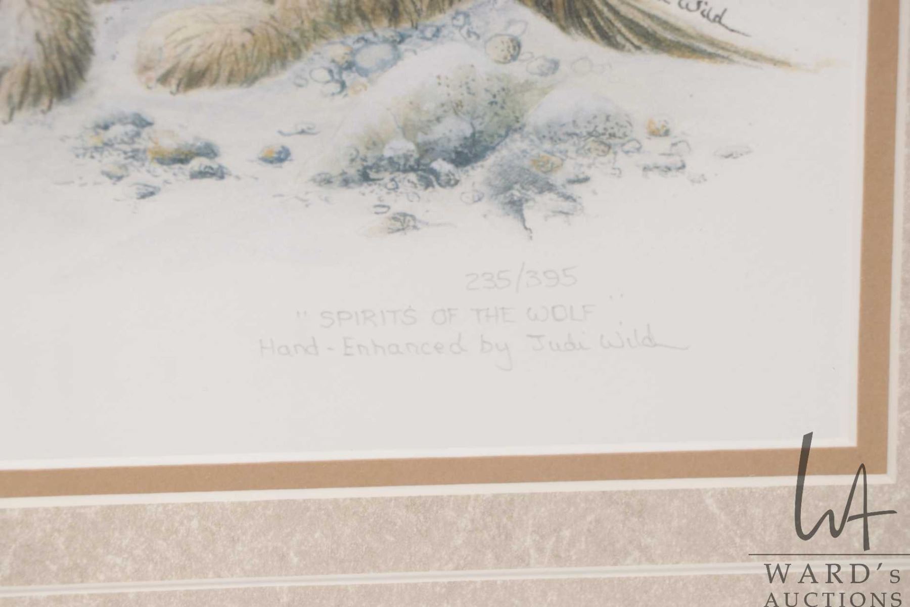 Judi Wild, framed limited edition print titled " Spirits of the Wolf", pencil signed by artist 235/3