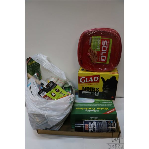 Selection of misc. household items including birthday candles, hair clips, toothpicks, masking tape, pliers, dog lead, playing cards, etc