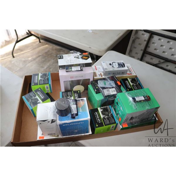 Selection of new products including humidifiers, car phone mount, scales, head phones, Karaoke mic, lighter cases, grinders and pipes