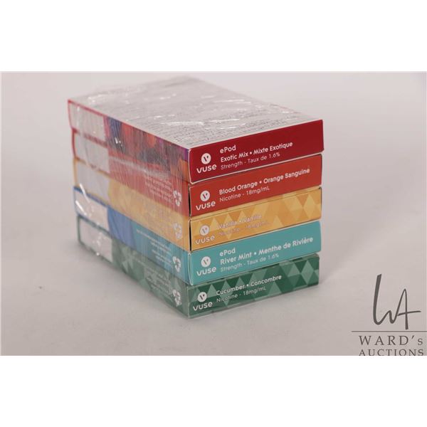 Five packages X 2 of Vuse nicotine pods including Exotic Mix, Forest Mint, Blood Orange, Vanilla and Cucumber Note: Age appropriate Canadian buyers o