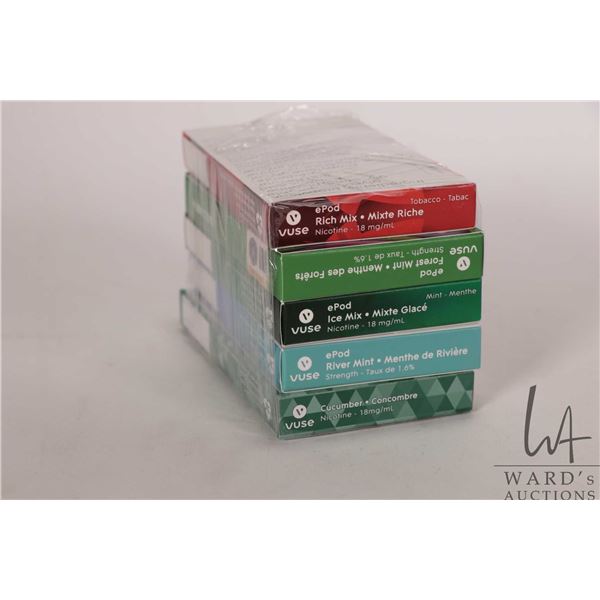Five packages X 2 of Vuse nicotine pods including Rich Mix, Forest Mint, Ice Mix, River Mint and Cucumber Note: Age appropriate Canadian buyers only