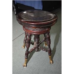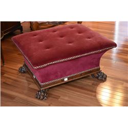 Antique button tufted foot stool with hinged lid for storage and fitted with large carved paw feet
