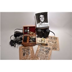 Two trays of guy collectibles including stag handled knife, sheathed Russell boat knife, horse motif card case, lighter, pocket watch, wrist watch, pa