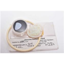 Loose genuine opal gemstone 3.95ct, a carved opal rams head 39.92cts and an Elephant ivory bangle