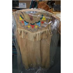 Beaded and tasselled leather mini dress and a pair of beaded moccasins