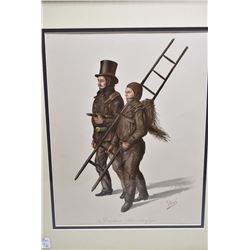 Pair of vintage hand coloured etchings including one featuring porters and one of chimney sweeps