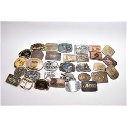 Large selection of cast belt buckles including Winchester Repeating Arms, John Deere, Wolverine Ford etc.