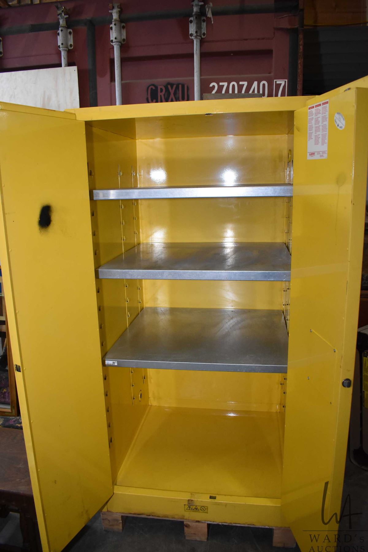 Justrite two door cabinet for flammable items storage, 65"H X 34" W X 34" D