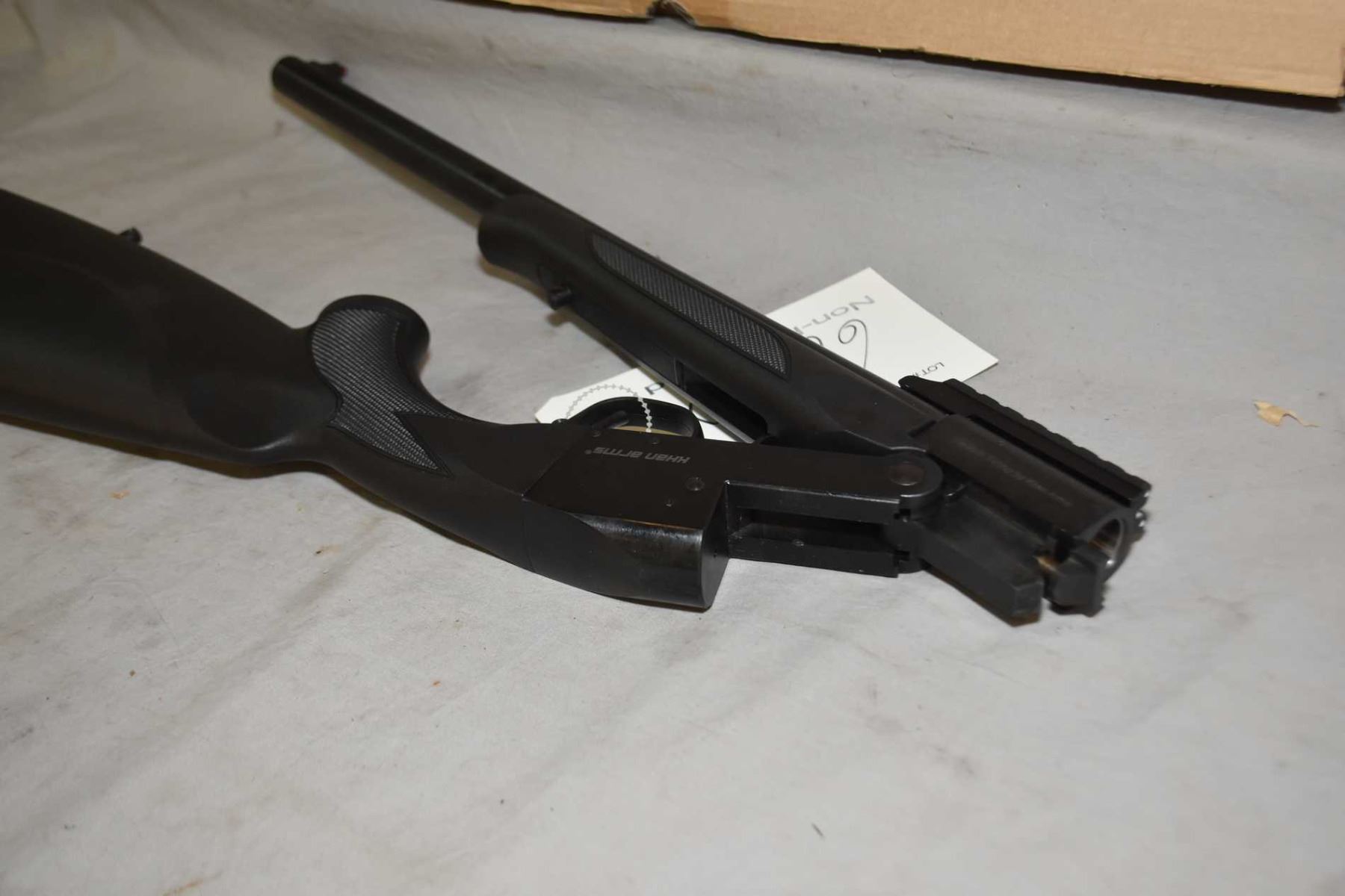 Khan Arms Model K-100 TAC, 12 gauge single shot shotgun w/ 20" bbl.[ black synthetic stock, blued barrel, folds in half for storage or survival use, appears new in box] Ser # 16T0046