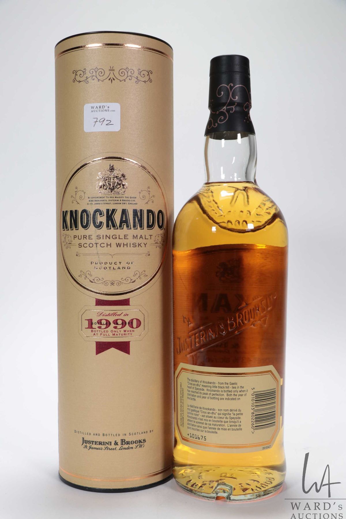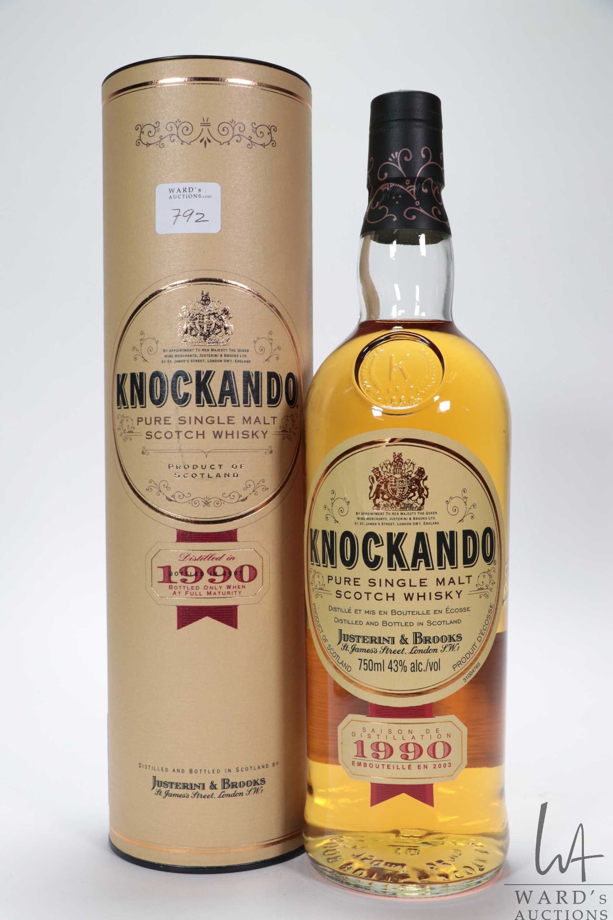 Knockando/ 1990/ Pure Single Malt Scotch Whisky/ Btld. 2003/ 750ml/ 43% ABV 700ml/ 46% ABV NOTE: Alcohol cannot be insured by any courier in Canada. Local pick up recommended. Canadian bidders only.