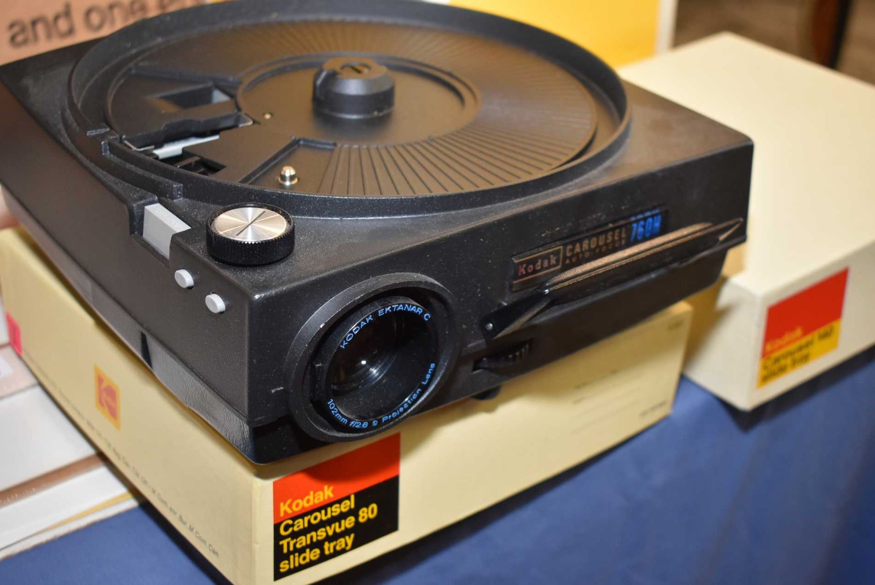 Kodak 760 H carousel style slide projector with extra slides and screen