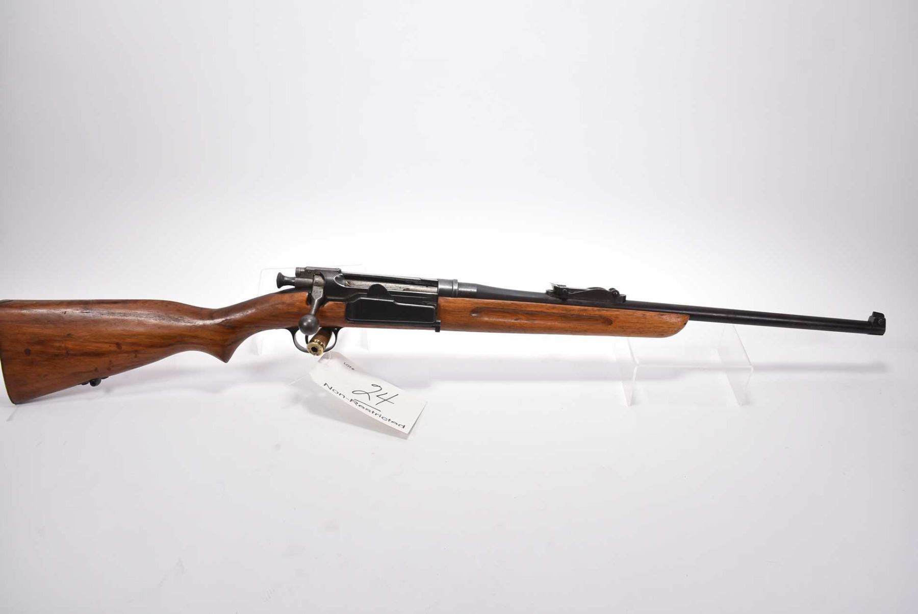Krag Jorgensen Model 1898 6.5 x 55 Cal ? Sporterized Bolt Action Rifle w/ 21 1/2  bbl [ fading blue