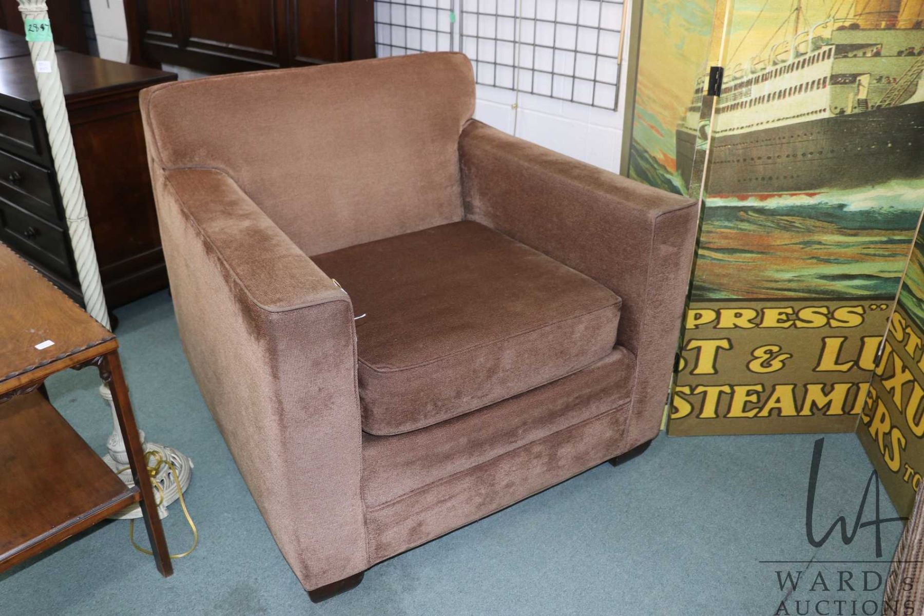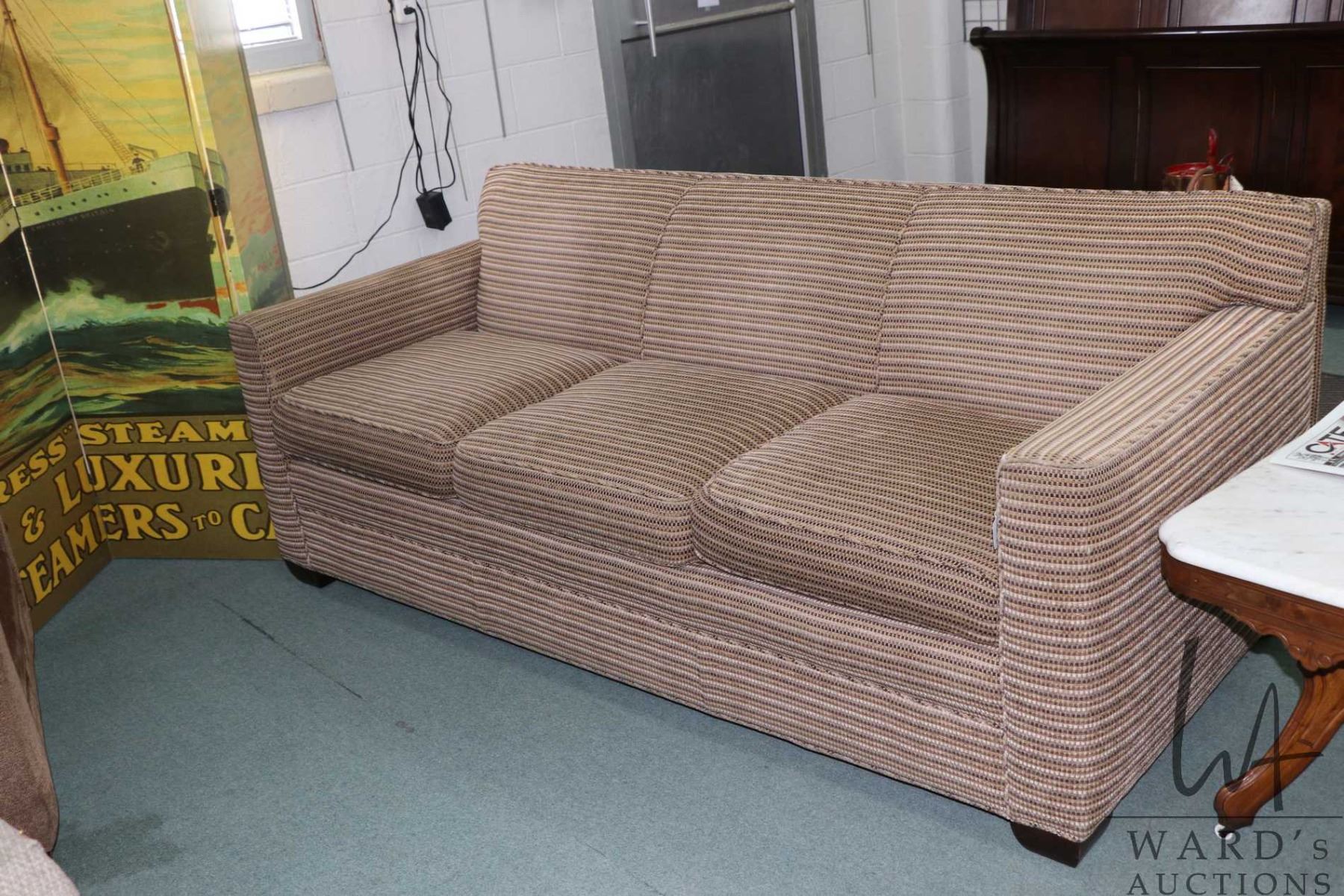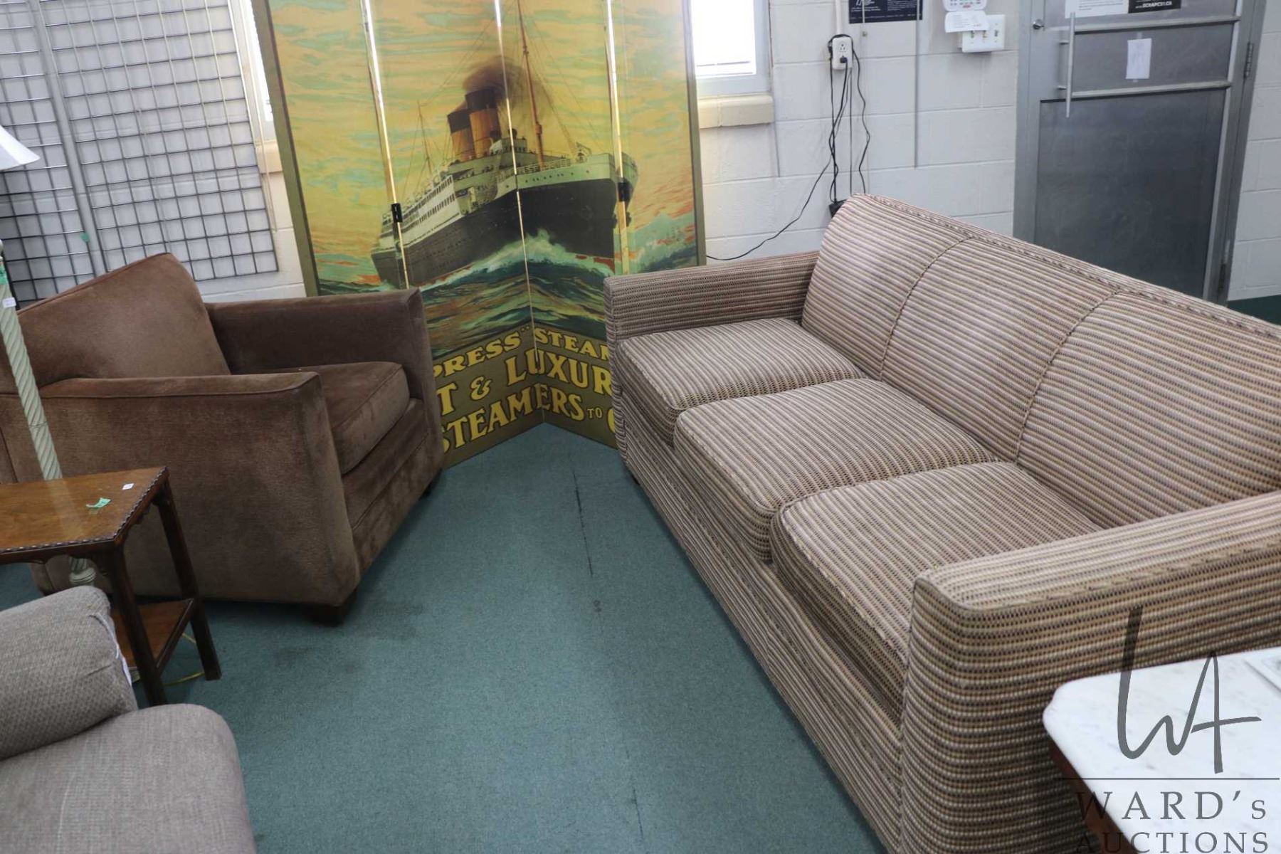 Kravet Furniture Inc. striped upholstered 80" couch with complimenting parlour chair