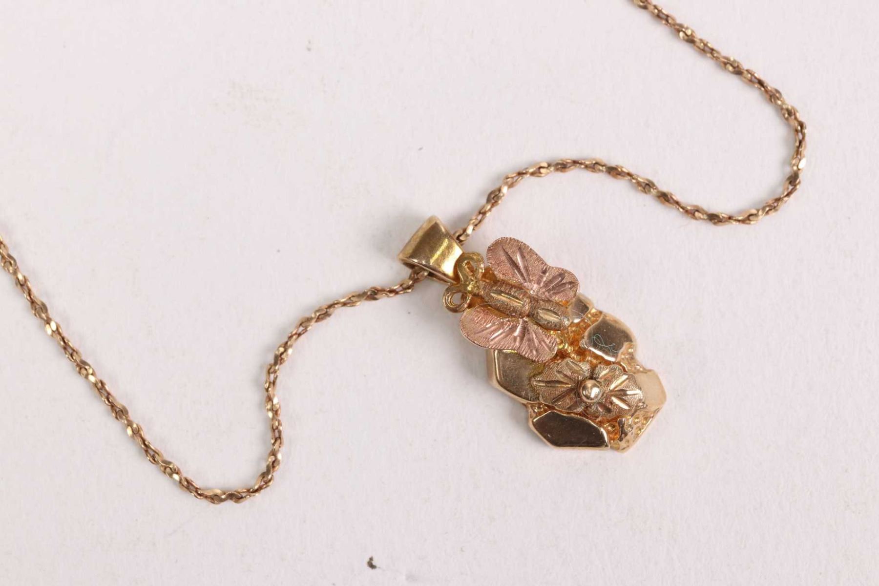 Ladies 10kt yellow gold neck chain and a 10kt tri-gold "Black Hill's Gold" pendant