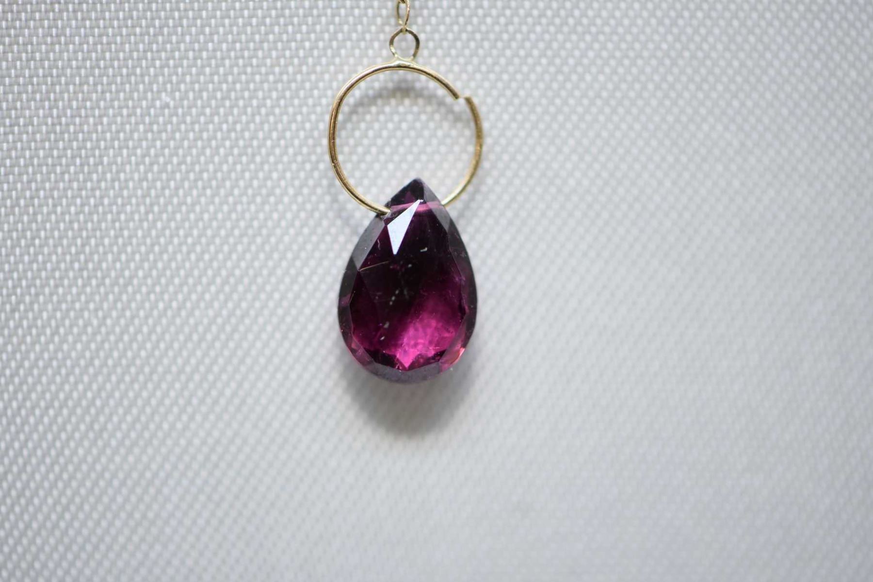 Ladies 10kt yellow gold necklace 20" in length and tourmaline briolette pendant