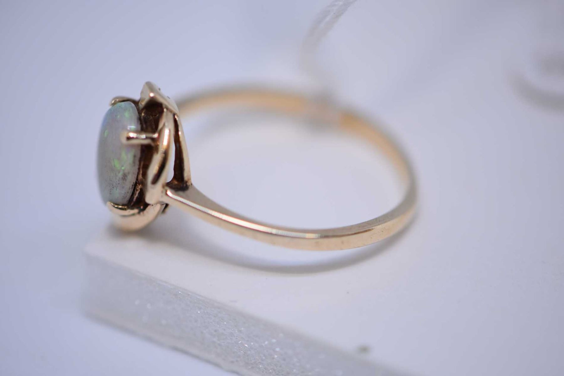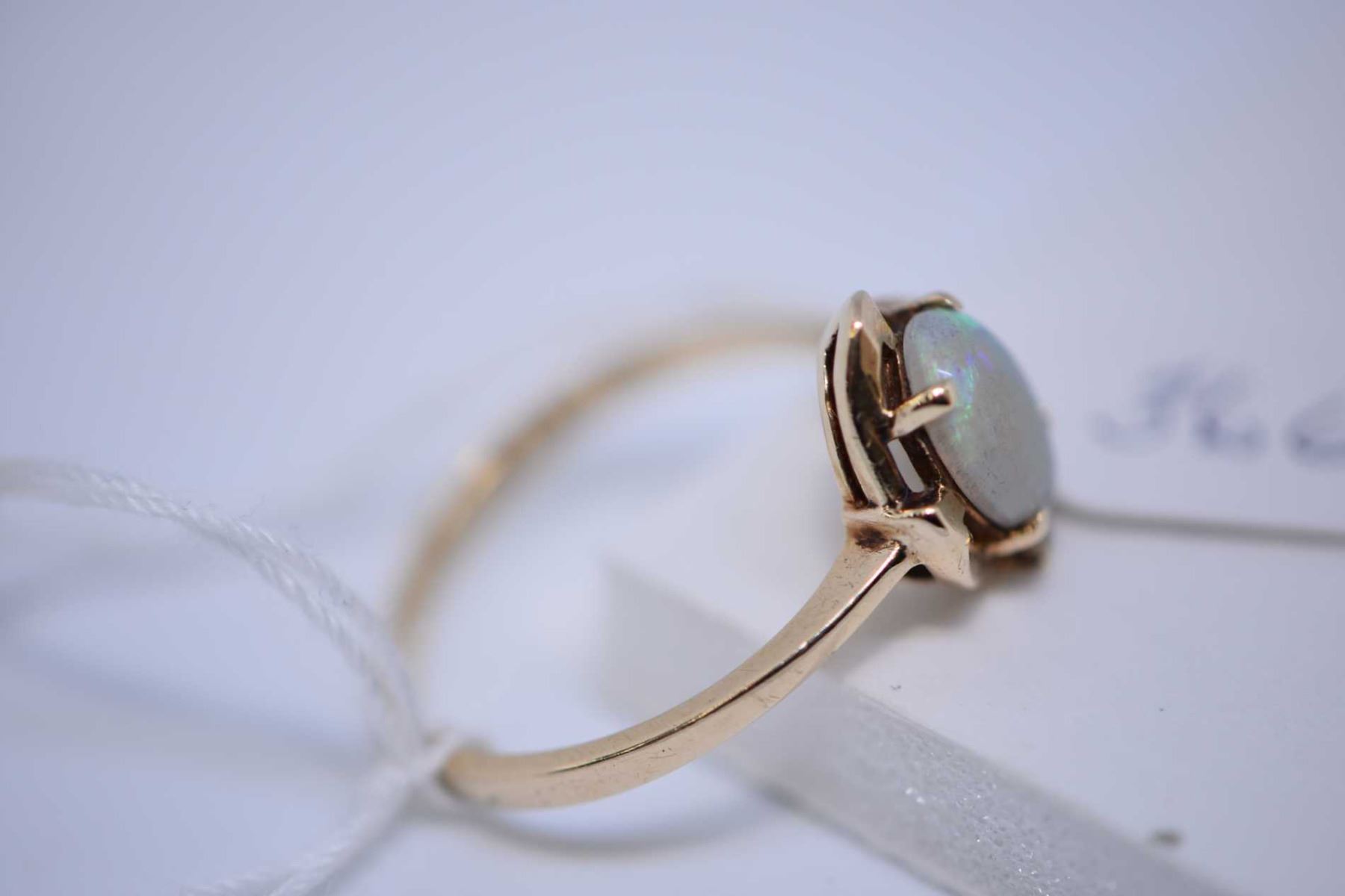 Ladies 10kt yellow gold ring set with oval cut opal gemstone