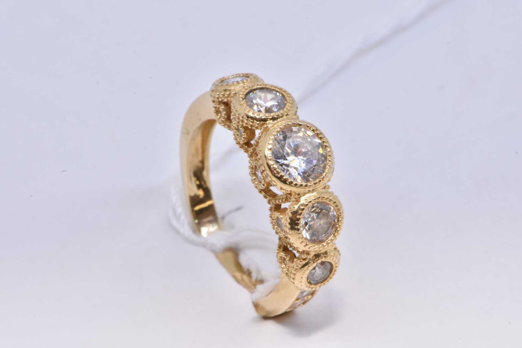Ladies 14kt yellow gold ring set with cubic zirconia diamond like stones