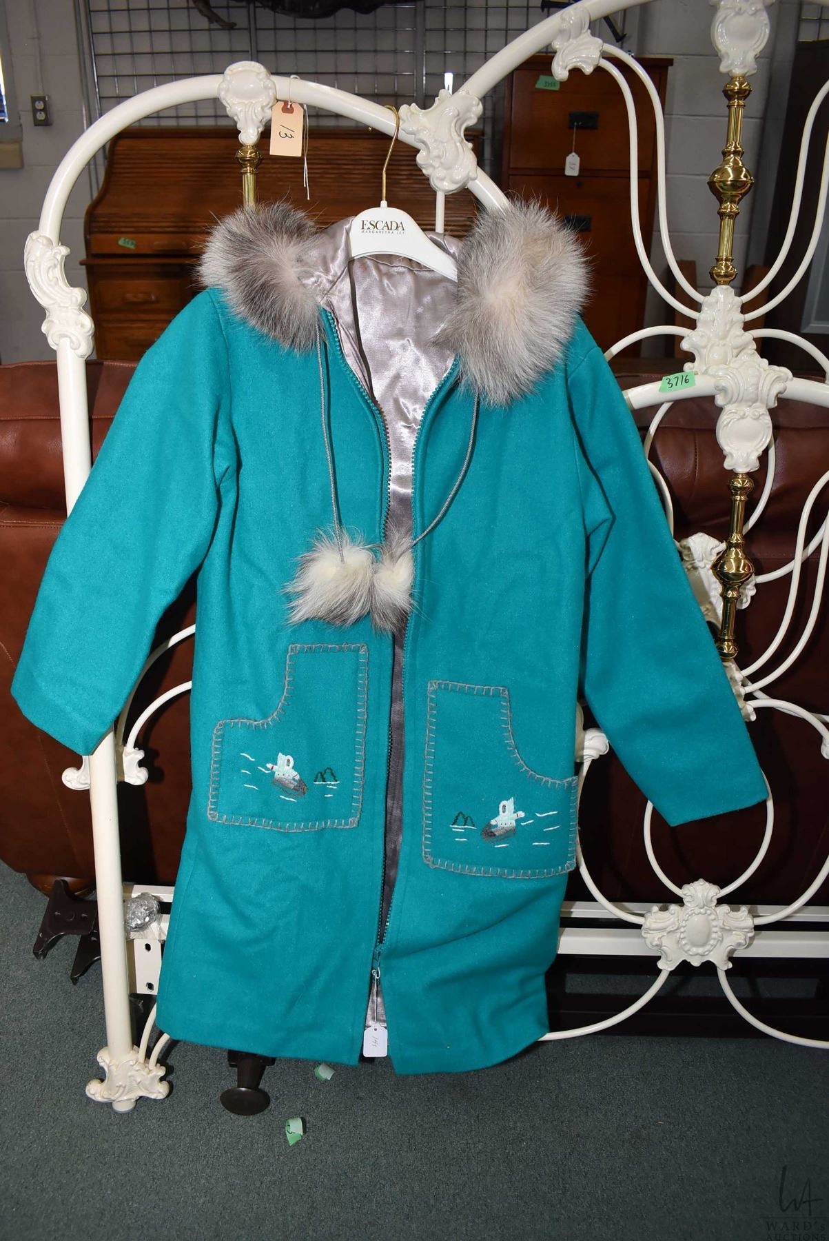 Ladies Inuit style wool parka with hand embroidered detailing and fur collar, appears to be a size medium