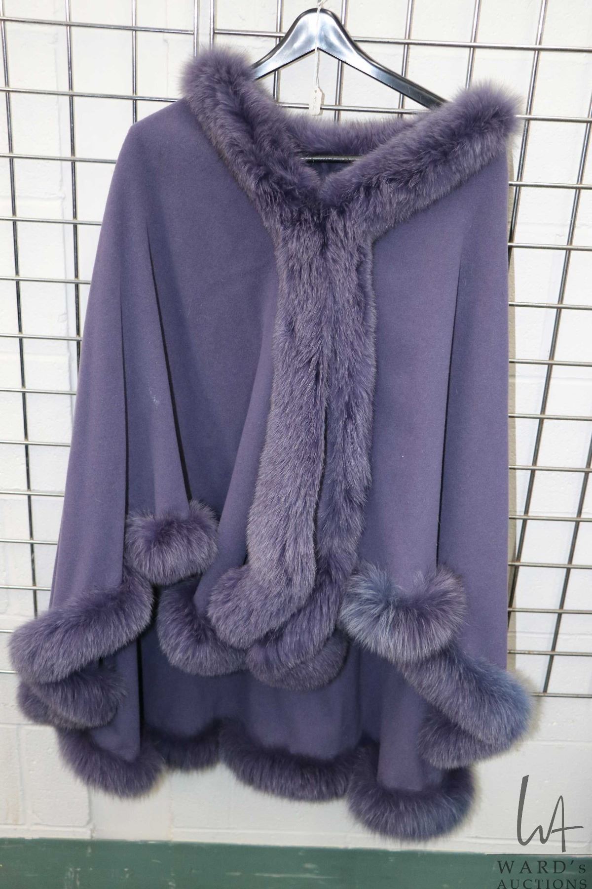 Ladies purple wool and purple fur trimmed cape