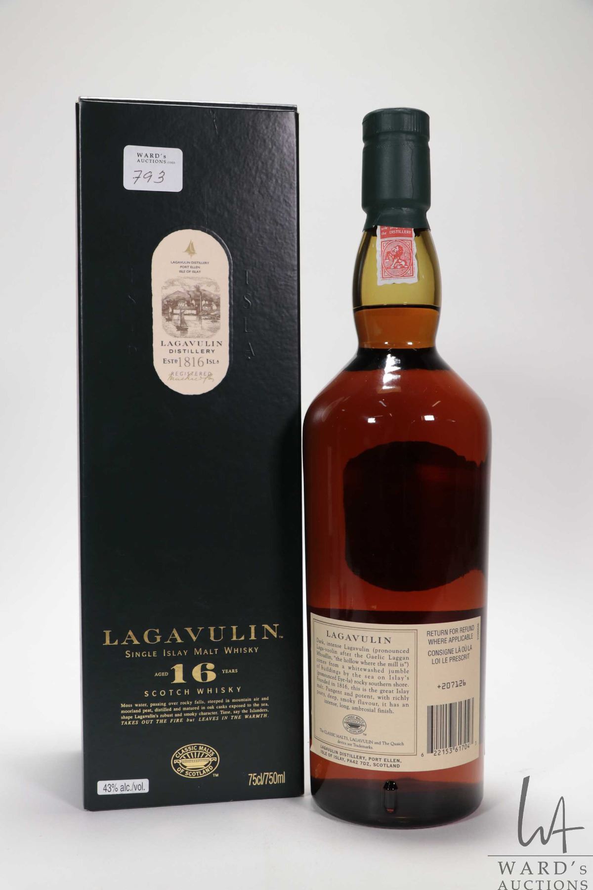 Lagavulin/ 16 Year Old/ Single Malt Scotch Whisky/ 750ml/ 43% ABV NOTE: Alcohol cannot be insured by any courier in Canada. Local pick up recommended. Canadian bidders only.