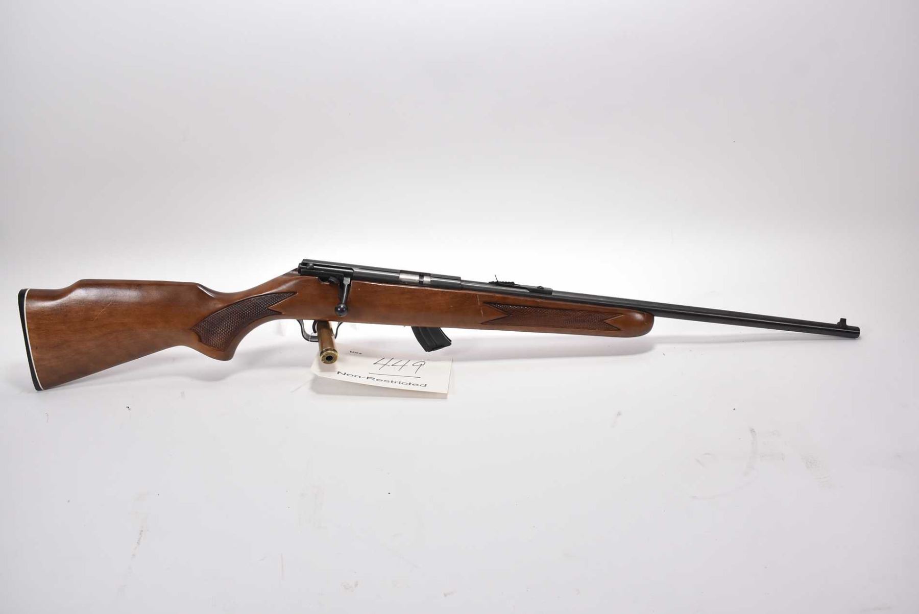 Lakefield Model Mark II .22 LR Cal Mag Fed Bolt Action Rifle w/ 21" bbl [ appears v - good, blued finish, barrel sights, pressed checkered pistol grip stock and forend, various marks to wood and scratches to wood and metal ] Ser # 228780