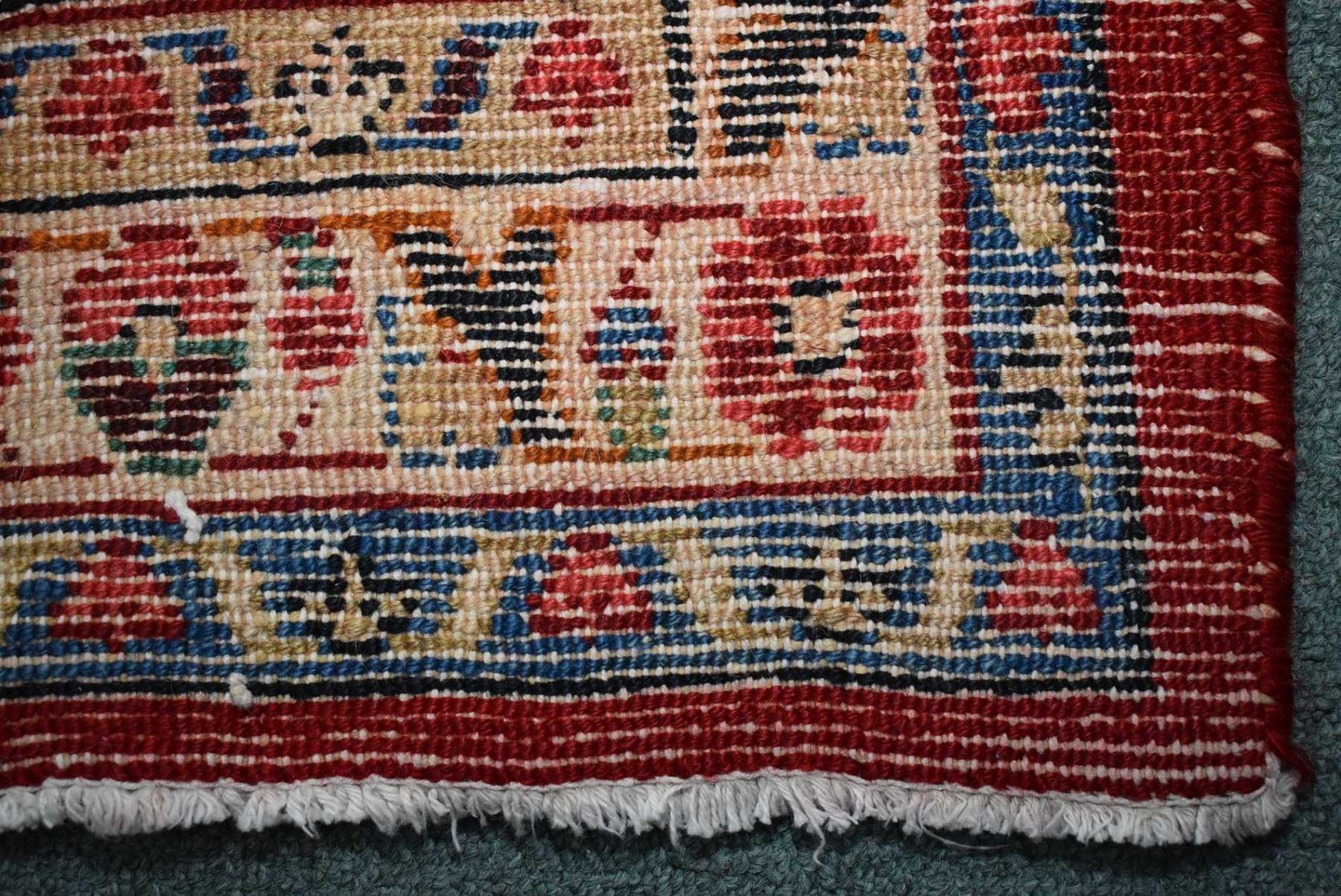 Large 100% handmade Iranian area carpet with center medallion, multiple borders, overall floral pattern, deep red background and highlights of blue, taupe, green etc. 156" X 130"