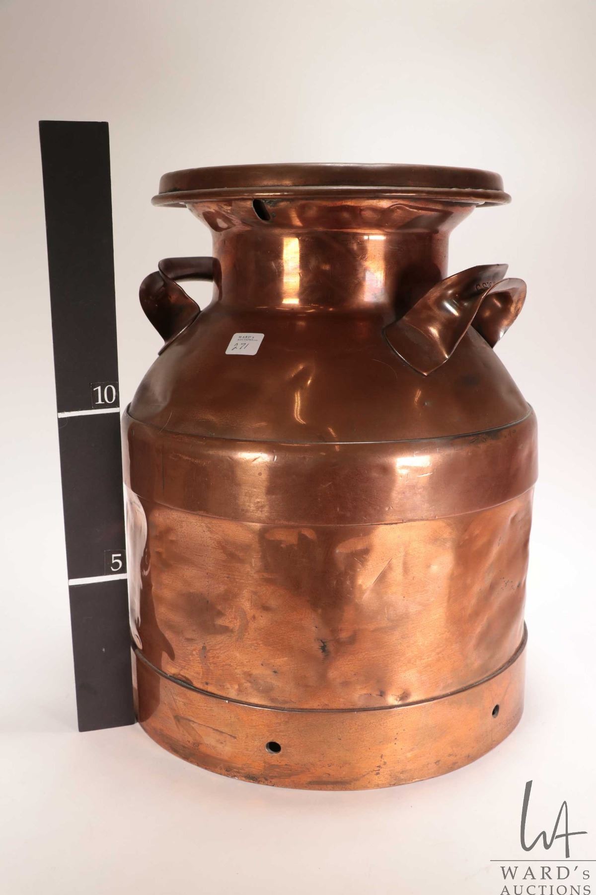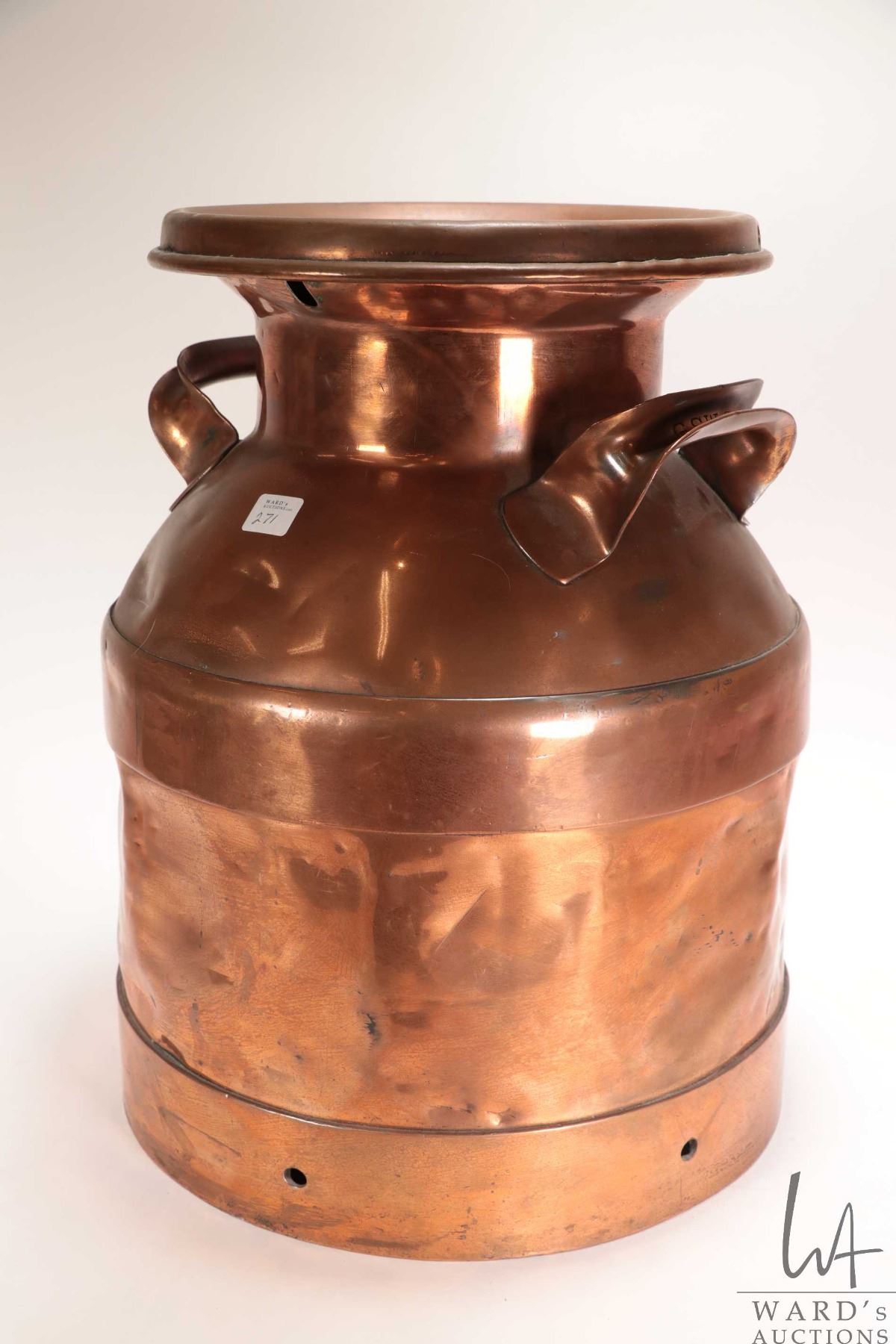 Large 5 gallon copper two handled milk jug with lid, 17" in height