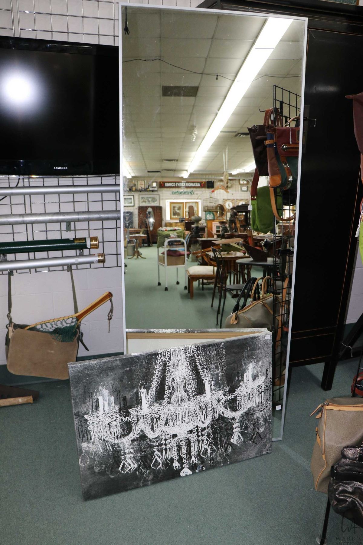 Large Ikea "Hovet" full length mirror 77" X 31" and a decor chandelier themed print