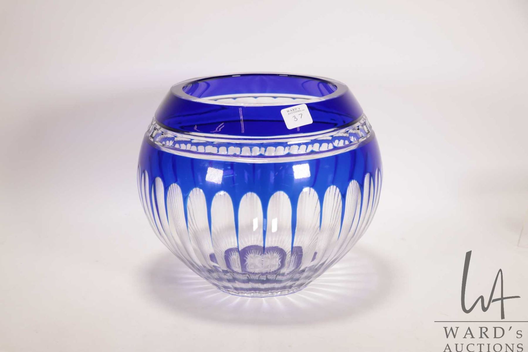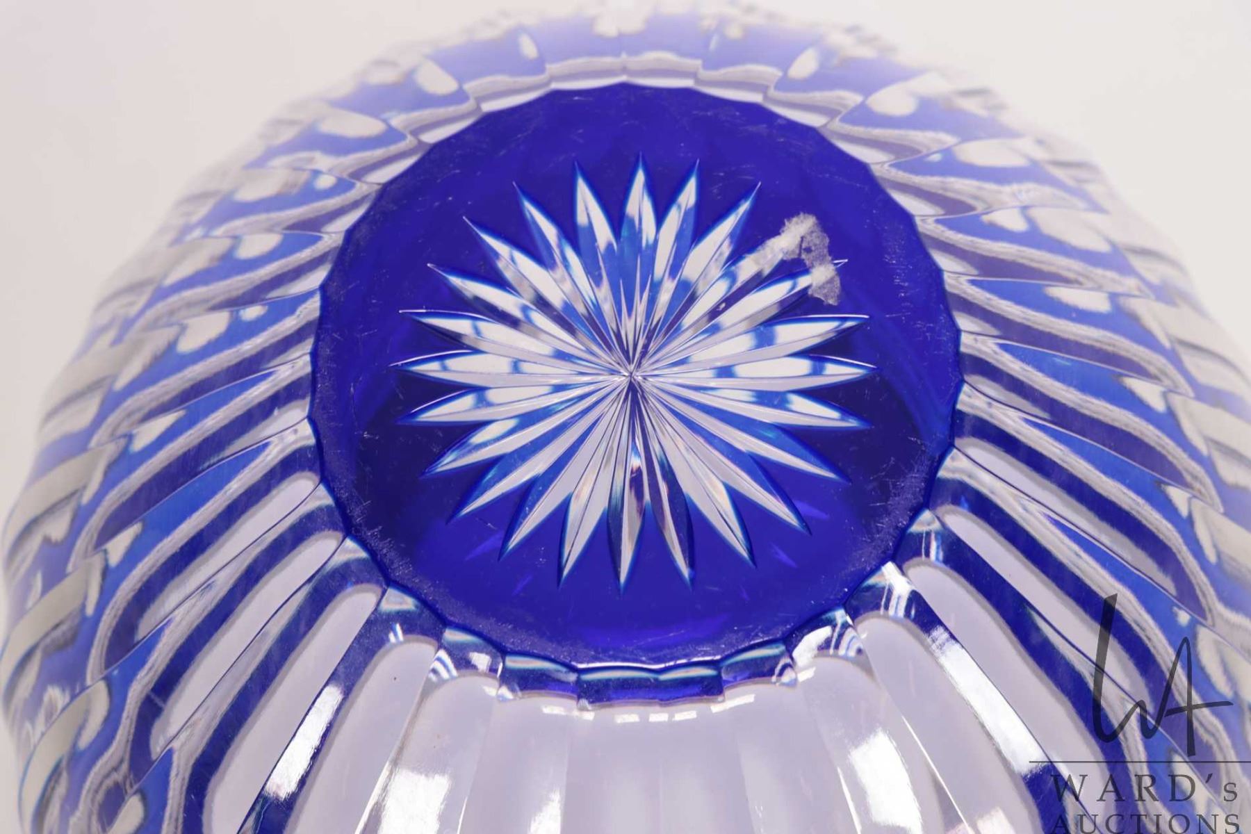 Large Polish cobalt cut to clear glass center bowl 8" H X 9" in diameter