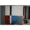 Large Renwil Art designer collage painting, numbered on verso 0L 741 and signed Mia, 50" X 50". Note: This item cannot be shipped. Local Pickup Only
