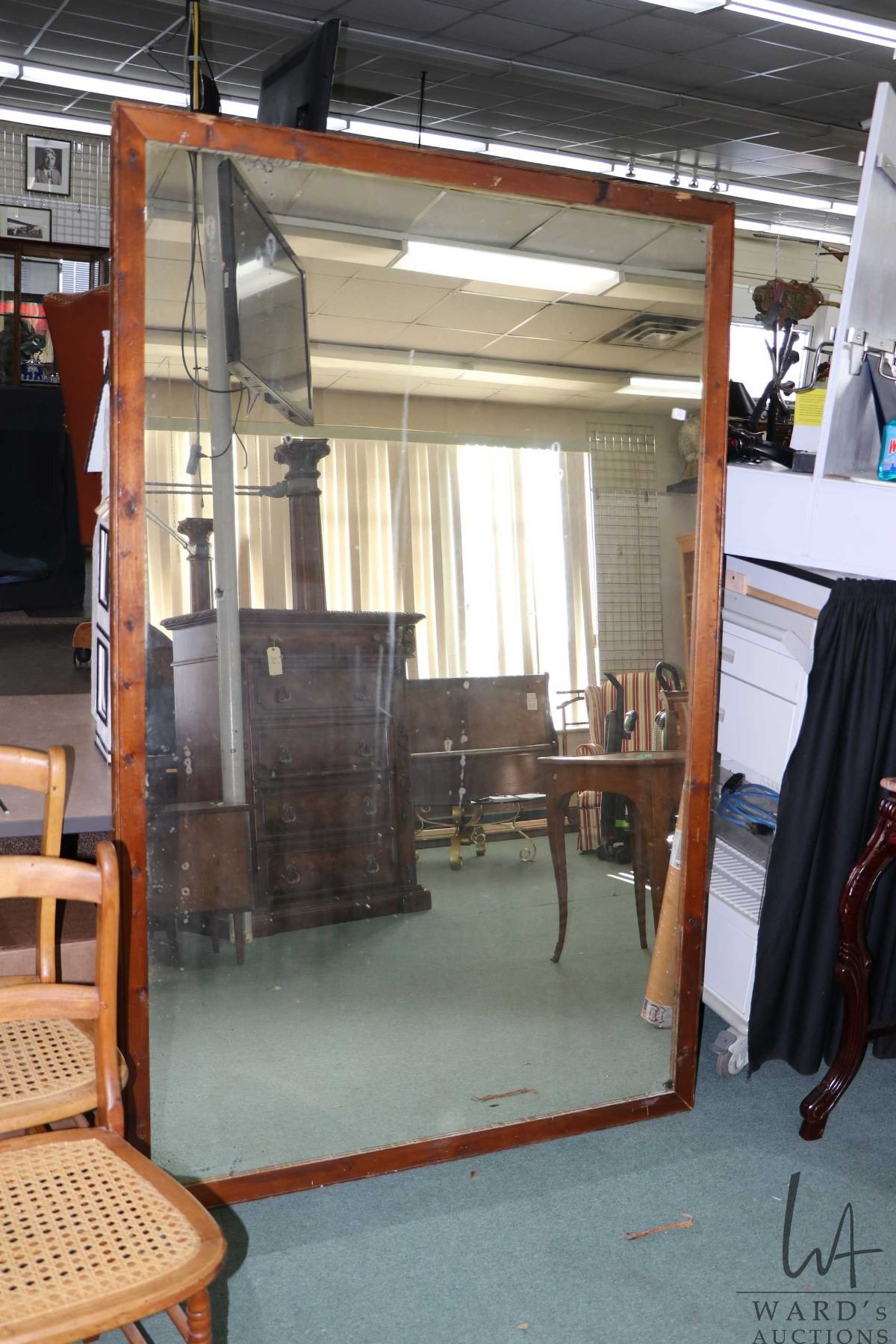 Large antique wood framed mirror with age appropriate distressed silvering, 75" X 48" outside dimensions