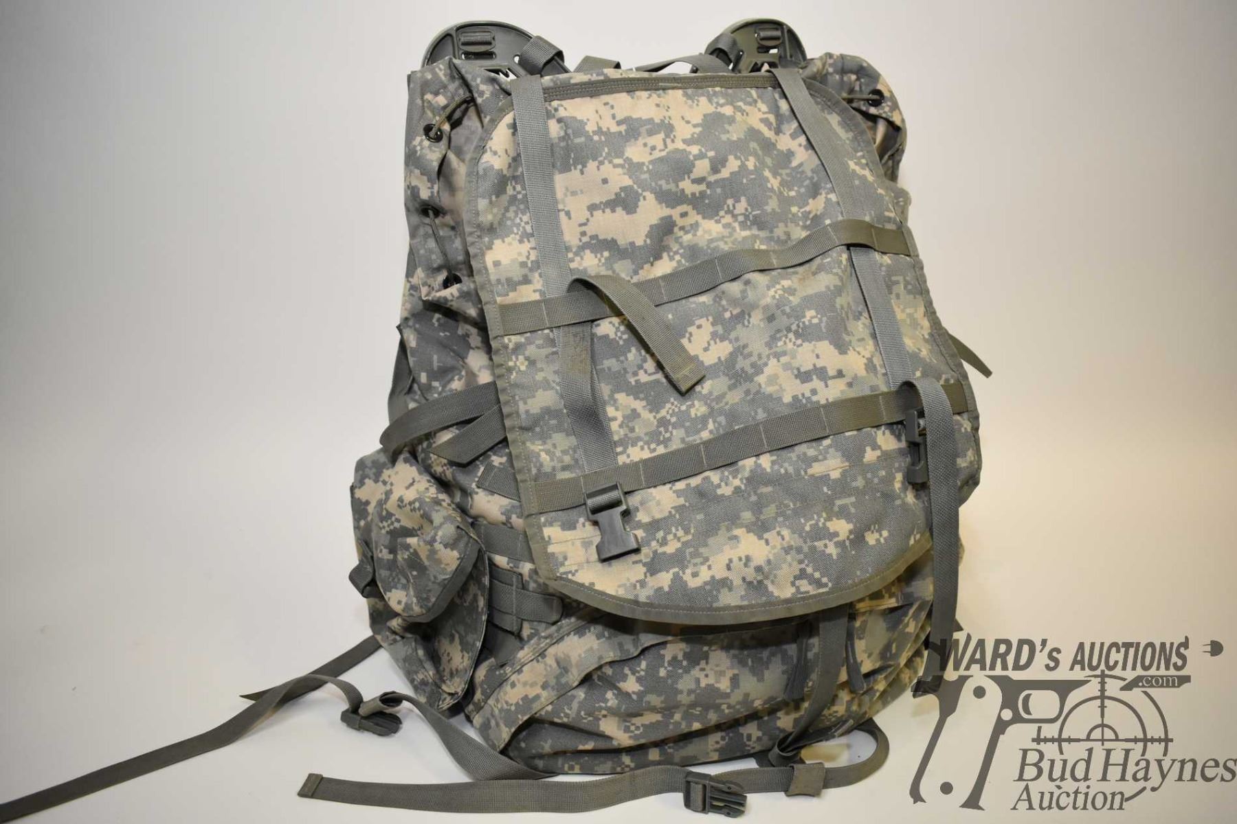 Large backpack and contents including shooting Large backpack and contents including shooting vest a