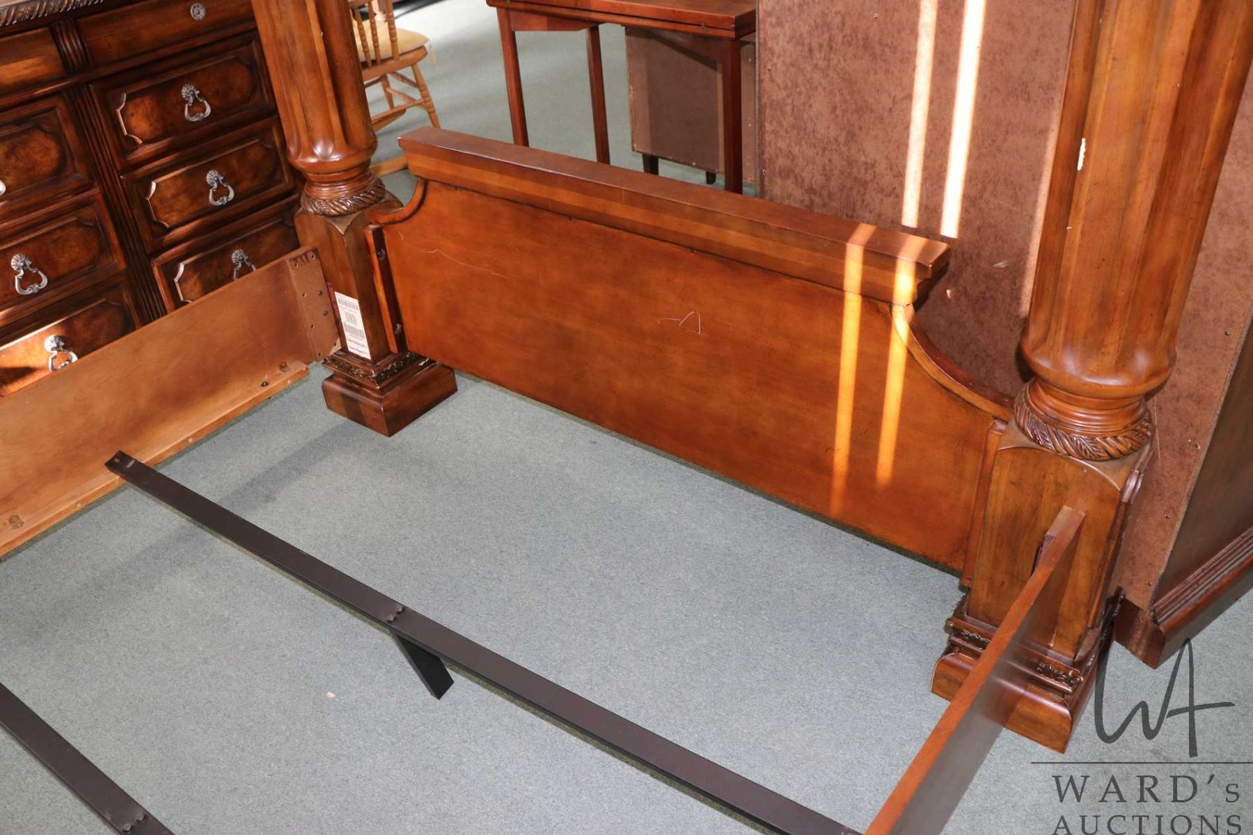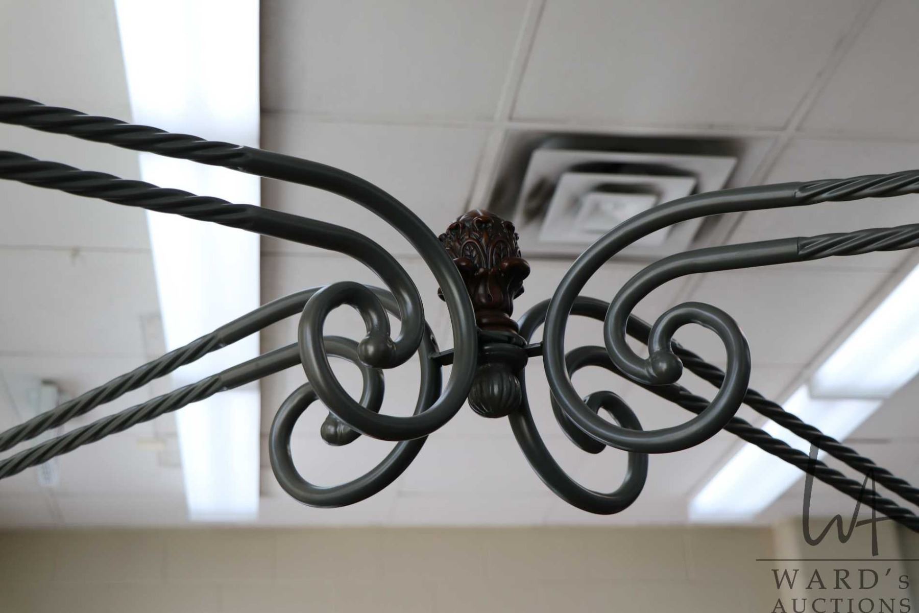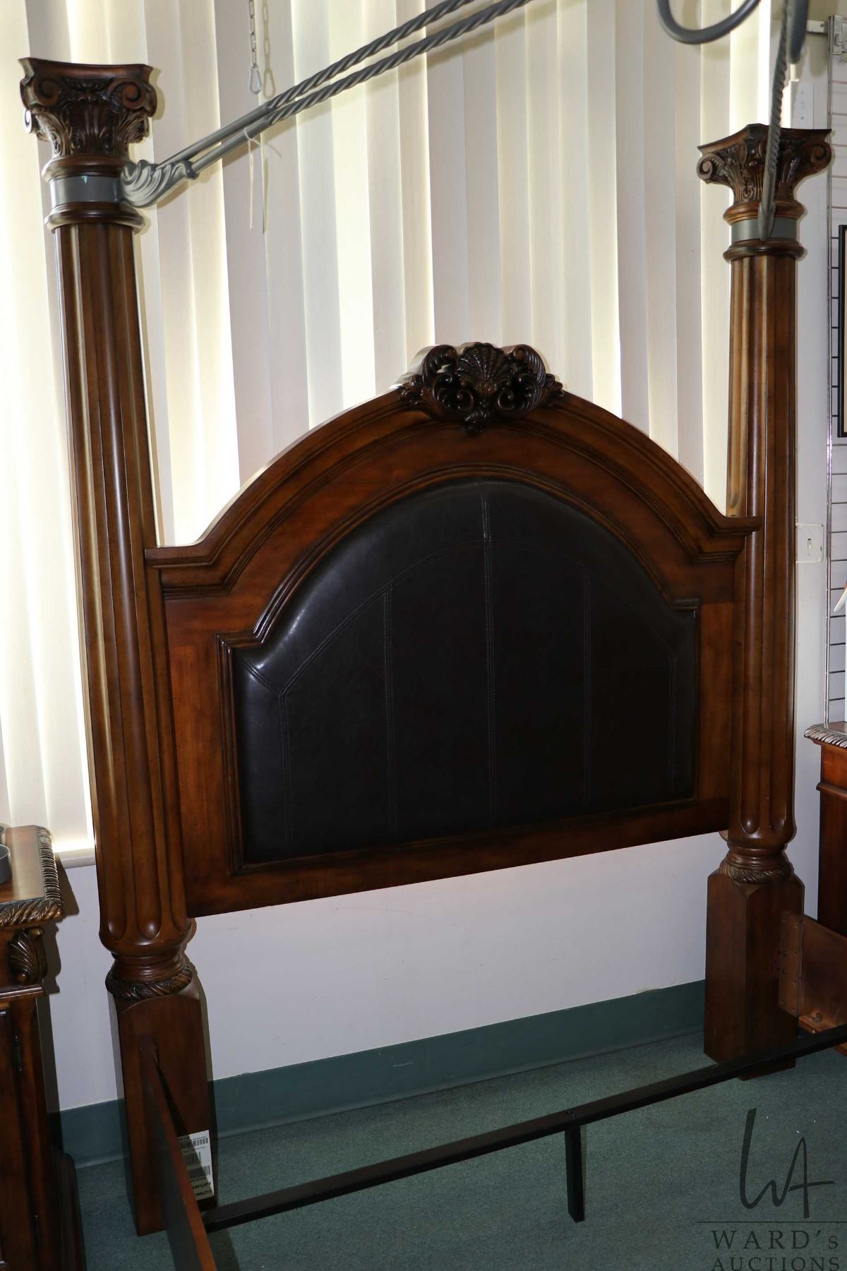 Large contemporary four poster bed with padded headboard to fit queen sized bed