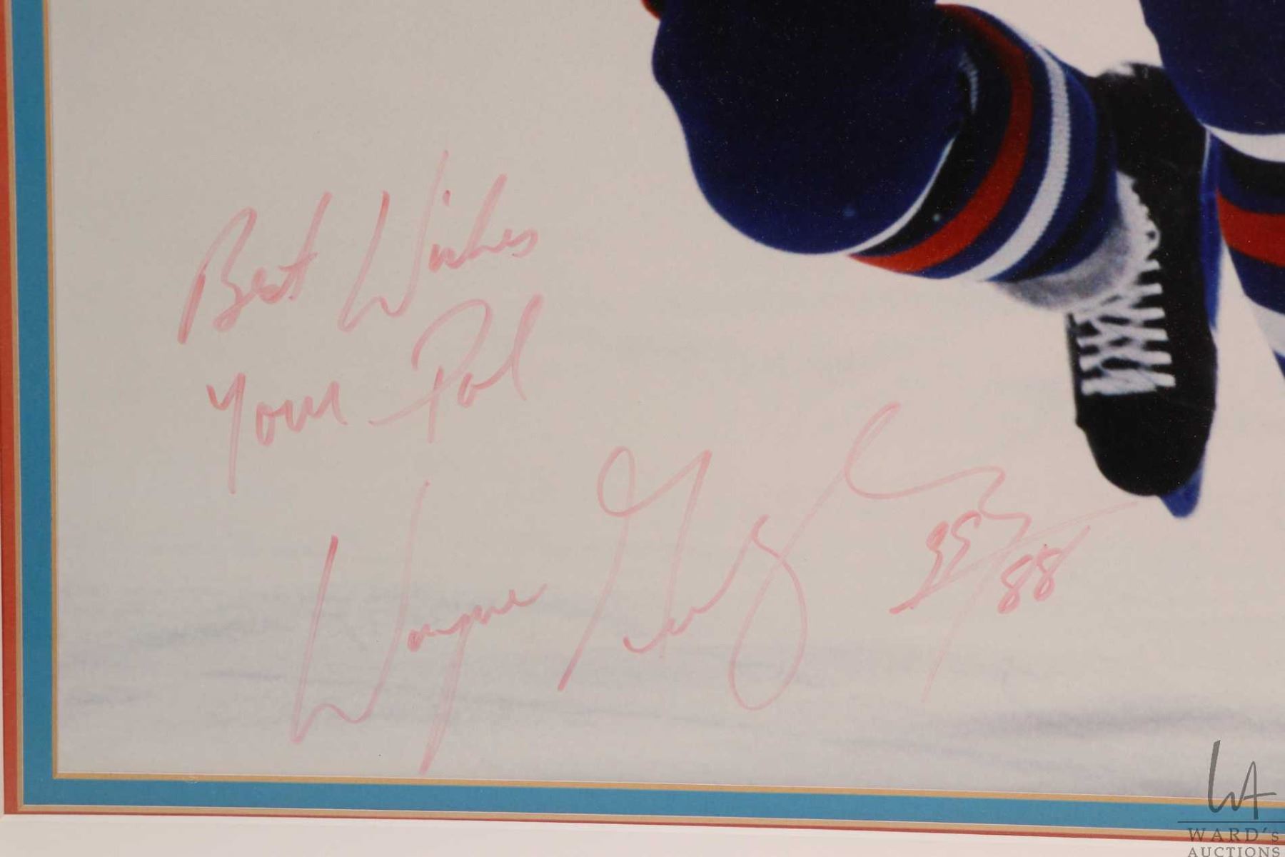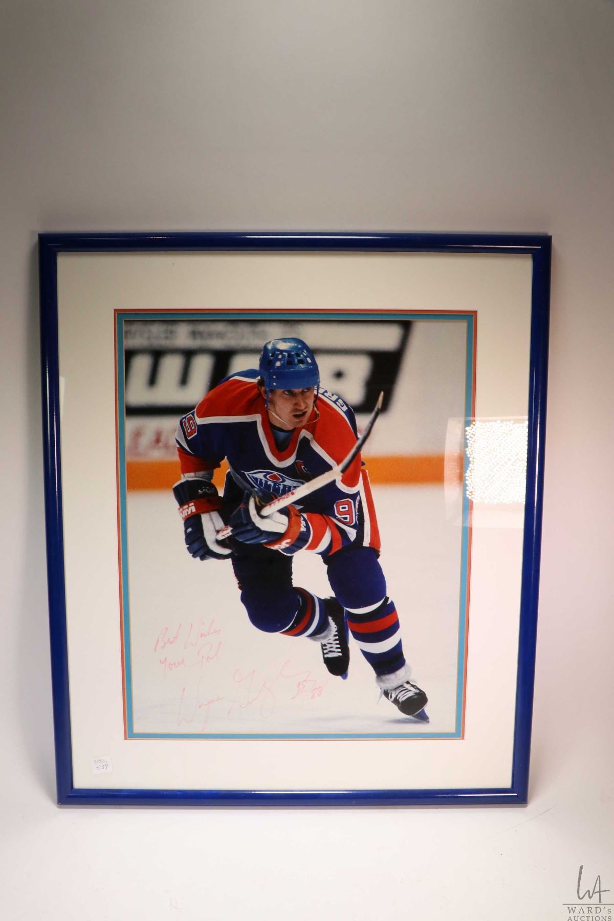 Large framed hand signed photograph "Best Wishes your pal Wayne Gretzky 1988". Note: Not available for shipping. Local pickup only