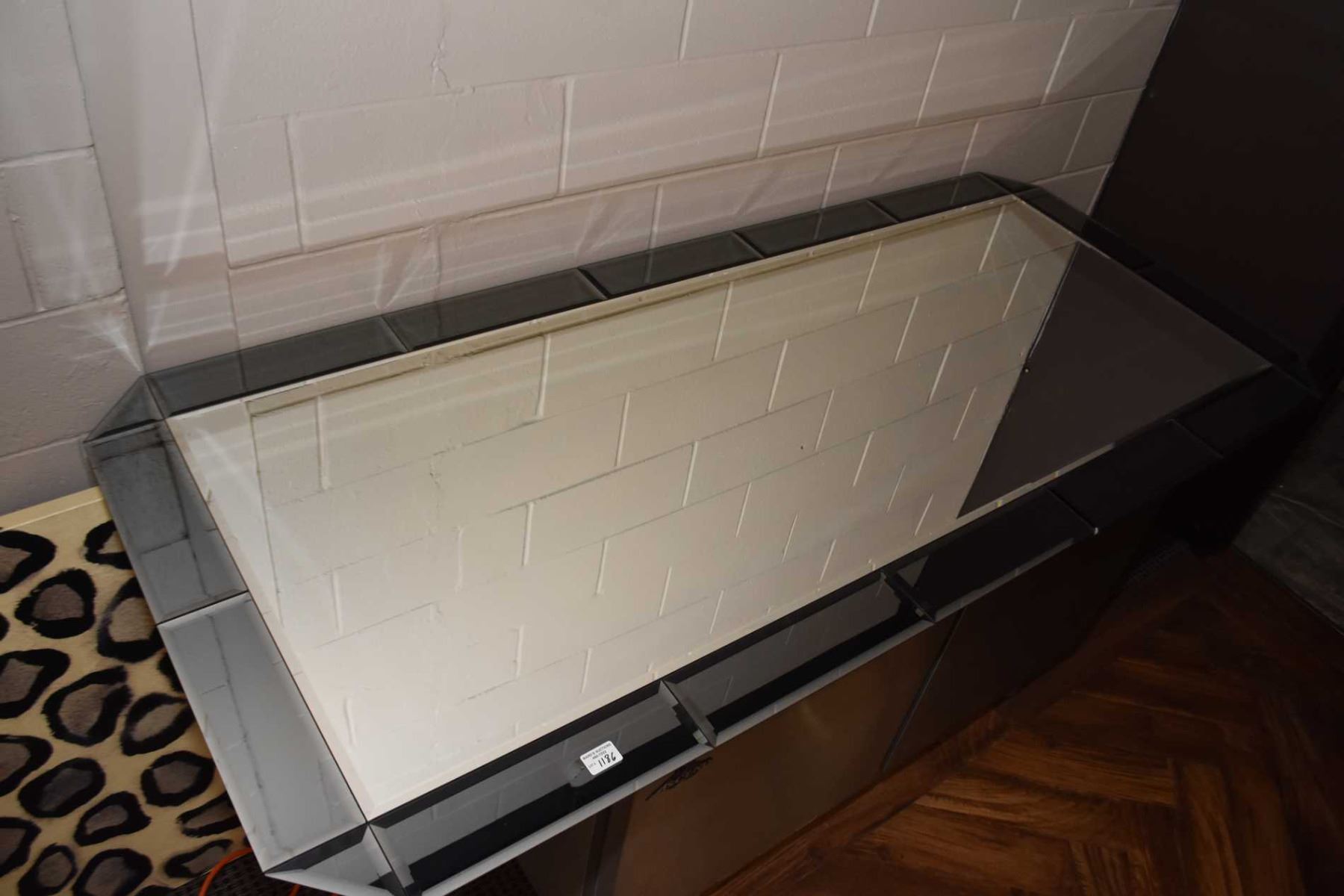 Large multi panel bevelled mirror, overall dimensions 75" X 34"