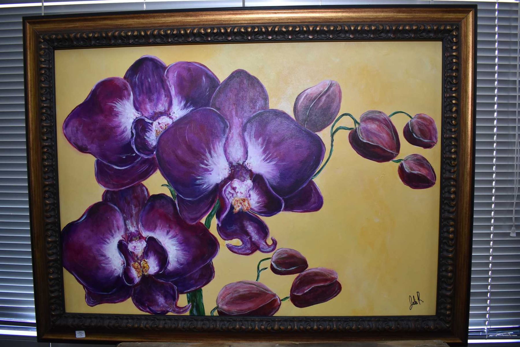 Large oil on canvas still-life painting of an orchid signed Jules R., 28" X 39". Not Available For Shipping. Local Bidders Only