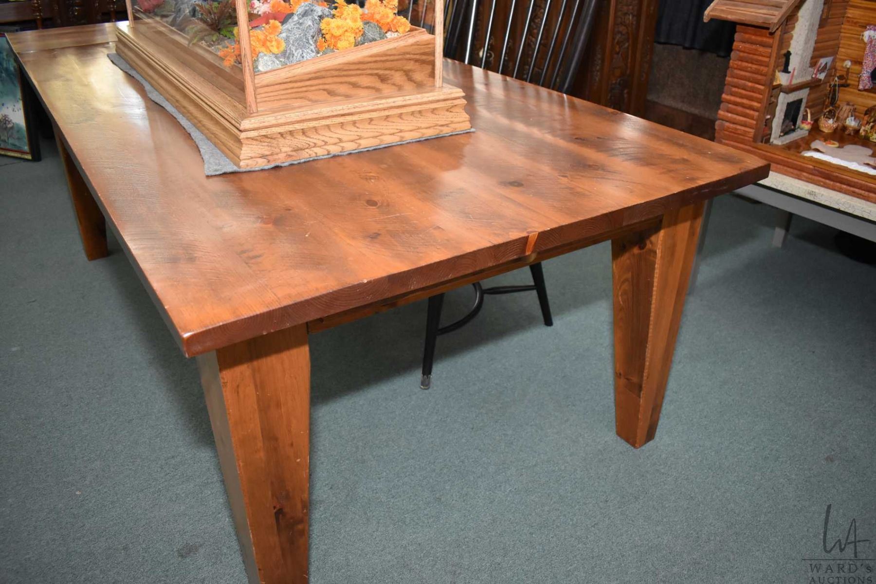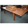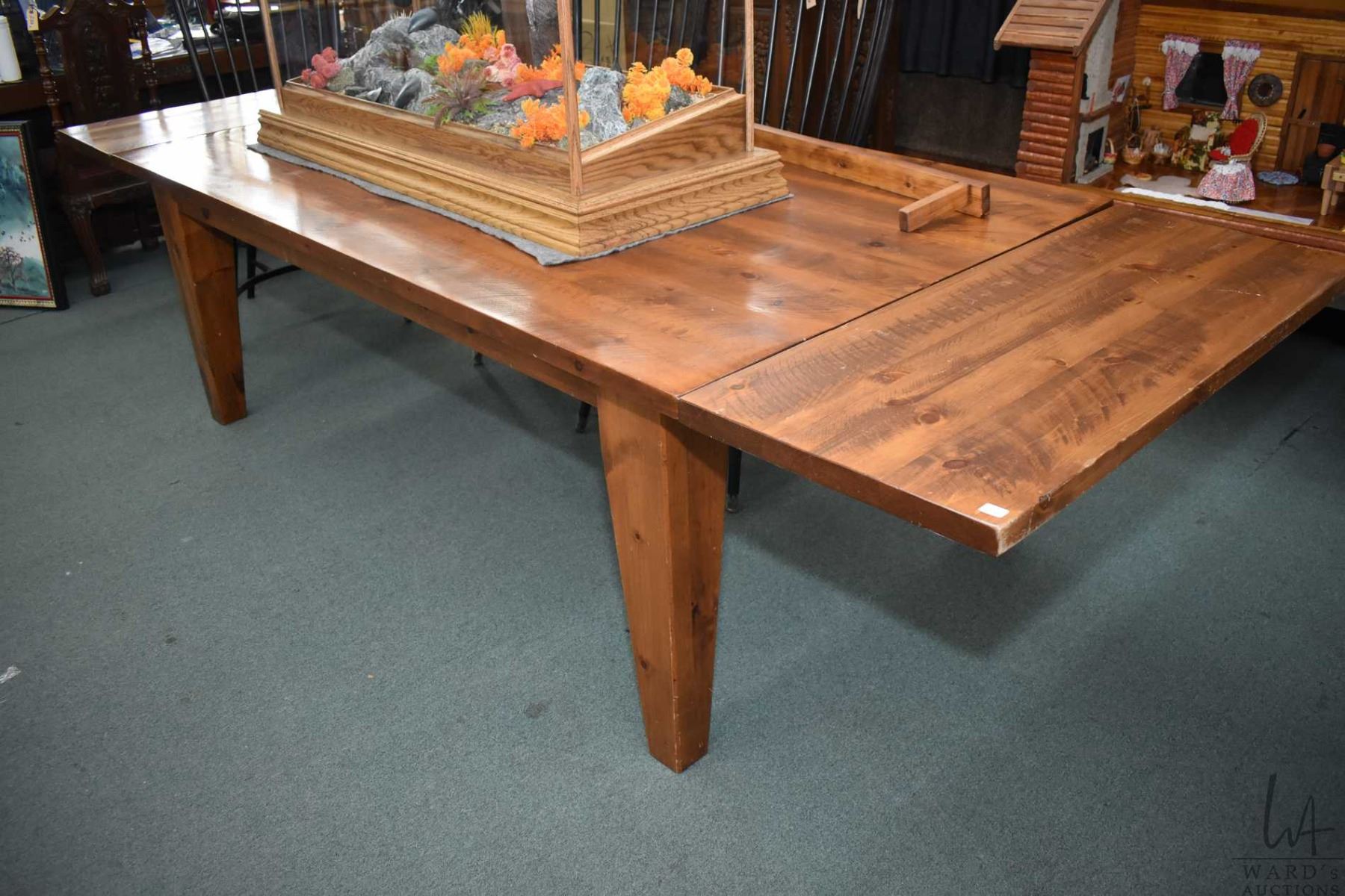 Large quality modern knotty pine harvest table 46" X 84" plus two 18" insert slide in add on leaves and two addition end caps for when leaves are not in use